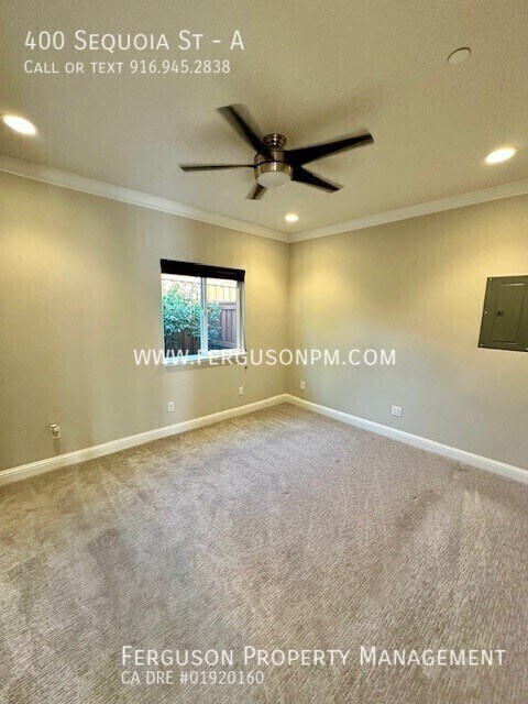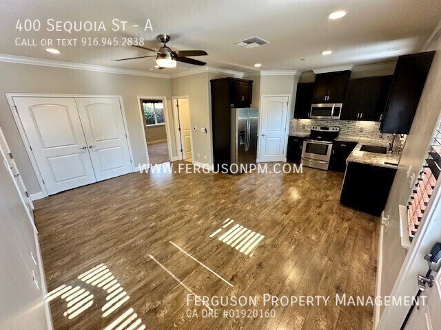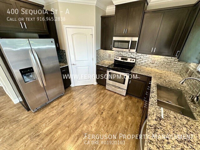 One bedroom home loaded with upgrades! Features include engineered hardwood flooring, stainless steel appliances, ceiling fans and granite countertops. This homes also comes with a stainless steel refrigerator and energy efficient washer and dryer. Close to parks, shopping, and public transportation. Schedule your showing today! One year lease required. Security deposit is $1745.00. Available now. Tenant is responsible for yard care, gas, electric, garbage, and a $100.00 monthly water/sewer surcharge. Refrigerator, washer and dryer are included. No pets please. Ferguson Property Management DRE# 01920160 Ferguson Property Management is committed to providing housing in accordance with all Federal, State, and local Fair Housing laws. For complete application guidelines please visit . All pets must have a current rabies vaccination and be licensed as required by local ordinance. Smoking is prohibited at every property we manage. We require all tenants to carry renters insurance. Photos, descriptions and information on this website are deemed reliable, but not guaranteed. Ferguson Property Management DRE# 01920160 Scam and Fraud Alert - This home is for rent exclusively by Ferguson Property Management - Beware of any other individual, even someone claiming to be the owner of the home, who might have directed you to schedule a showing or might have scheduled a showing for you. We do not advertise on Craigslist or Facebook Marketplace. We do not accept Zillow applications. We will never ask you to wire money or pay with gift cards or cash. Do not submit any application for this home with or pay any fees or deposits to any party other than Ferguson Property Management. If you have any questions or concerns, please contact: Ferguson Property Management Dual Pane Windows Electric Dryer Hook Up Electric Range Energy Efficient Windows Great Room Laminate Wood Floors Laundry Room Inside Less Than 5 Years Old Refrigerator Included