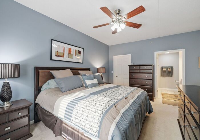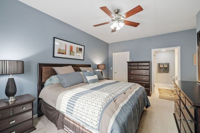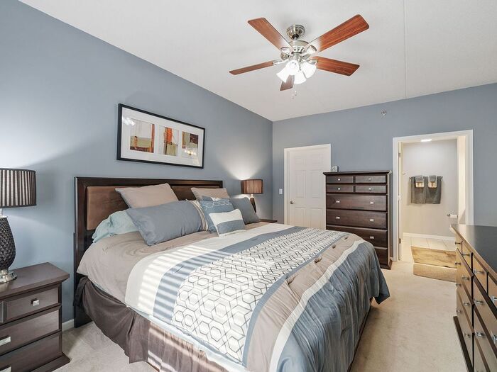 Live easy in this move-in-ready 2 bed, 2 bath condo just minutes from the train, dining, and scenic nature paths. Enjoy a bright open layout with a cozy fireplace, in-unit laundry, and a spacious kitchen. The primary suite features a walk-in closet and full bath. Bonus: covered parking, extra storage, and access to an on-site gym in a secure building with elevator. Comfort and convenience all in one! Contact us to schedule a showing.