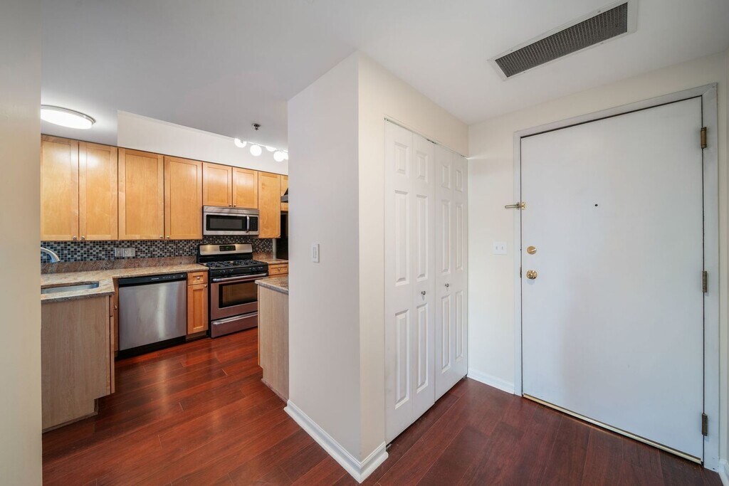 Exceptionally quiet,giant,light-filled 1BR condo with a massive private terrace in an iconic River North location. Beautifully upgraded with a tasteful style the unit features a superb layout with a large living/dining room open to a chef's worthy kitchen with breakfast bar,granite countertops,stainless steel appliances,new dishwasher,hardwood cabinets and built-in two stage pot-rack. The large private bedroom with big picture-window has two generous closets including a walk-in and a deep hall closet. Outstanding storage throughout with a large hall closet,extra kitchen cabinets and additional space in the utility and laundry closets. Excellent condition,freshly-painted,clean and move-in ready. Central HVAC and in-unit laundry as well. Boutique 24hr doorman building,pet-friendly,with an on-site manager,a full-sized gym,bike room and lobby lounge. Indoor heated garage PARKING SPACE INCLUDED. Walking distance to the Montgomery Ward riverfront park,a water taxi stop,East Bank Club,top Chicago restaurants,local shops,public transportation,and downtown offices and attractions,plus easy access to I90/I94. Previously rented,now vacant and easy to show. MLS# MRD12543726 Based on information submitted to the MLS GRID as of [see last changed date above]. All data is obtained from various sources and may not have been verified by broker or MLS GRID. Supplied Open House Information is subject to change without notice. All information should be independently reviewed and verified for accuracy. Properties may or may not be listed by the office/agent presenting the information. Some IDX listings have been excluded from this website. Prices displayed on all Sold listings are the Last Known Listing Price and may not be the actual selling price.