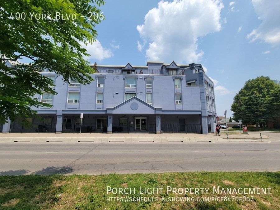 Welcome to the charming 2 bedroom 1 bath unit at 400 York Blvd! Spacious open layout AC In-suite laundry Amazing walkable location Minutes to the 403 Great transit options at your doorstep. Secured front door voice intercom for added peace of mind full piece bath Enjoy the convenience of underground parking $1895+ Hydro and gas