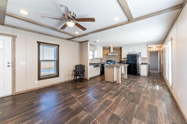 Incredible opportunity to lease a fully updated mobile home sitting on 5 acres with ponds. This home features 3 bedrooms, 2 full bathrooms, spacious living room, new laminate flooring through out, updated kitchen with stainless steel appliances, farm sink, large kitchen island, utility room, oversized primary bedroom with ensuite bathroom that features a soaker tub and large walk in shower. Relax outside under your large covered front patio over looking your ponds and the beautiful sunsets. A MUST SEE!