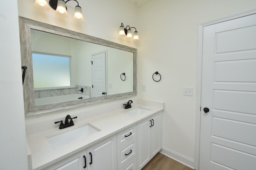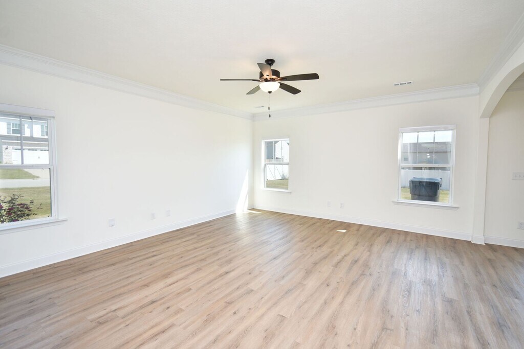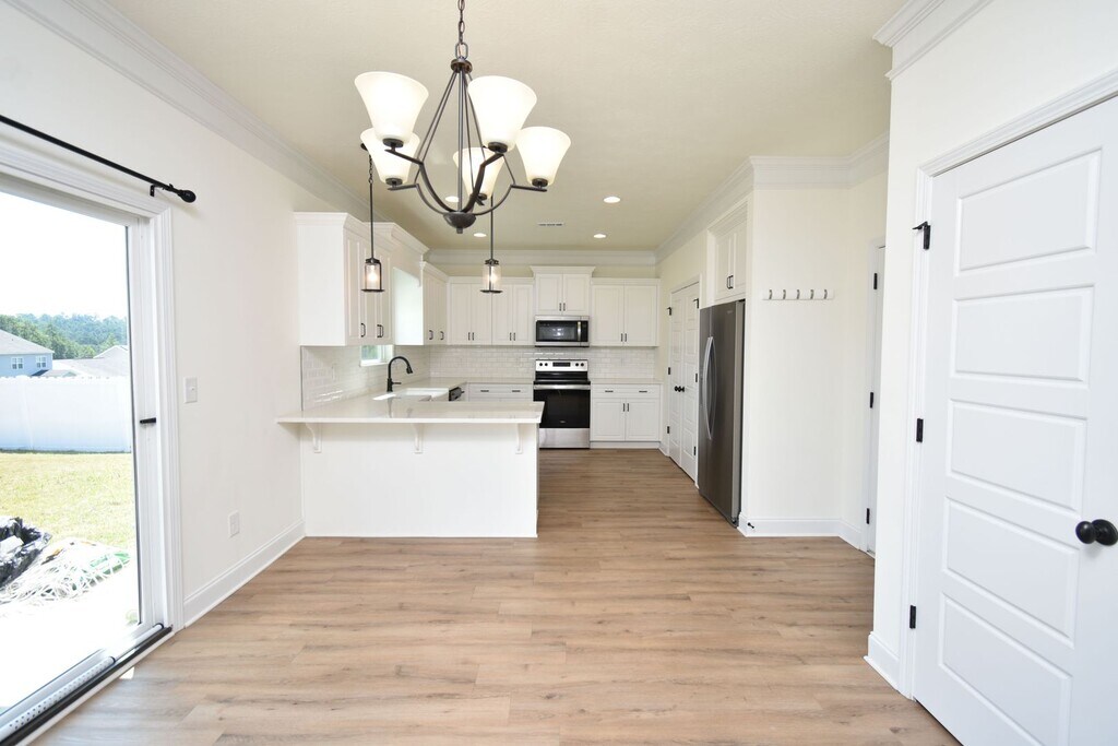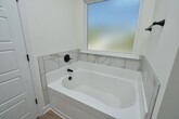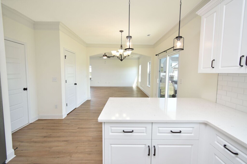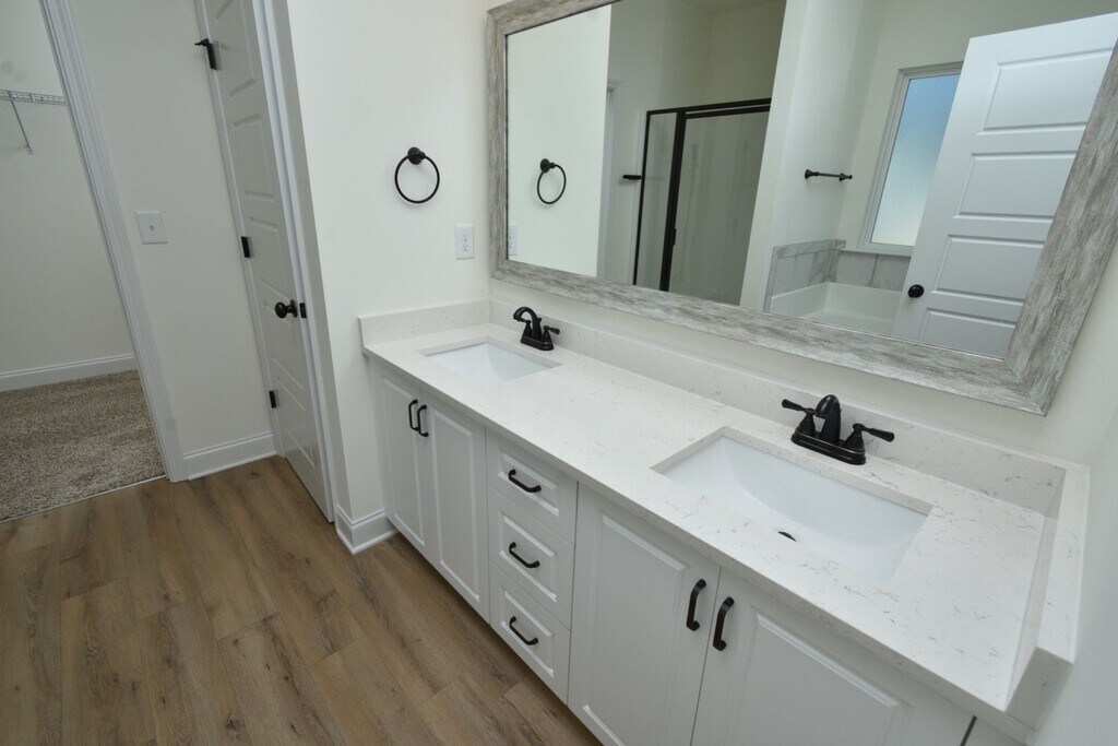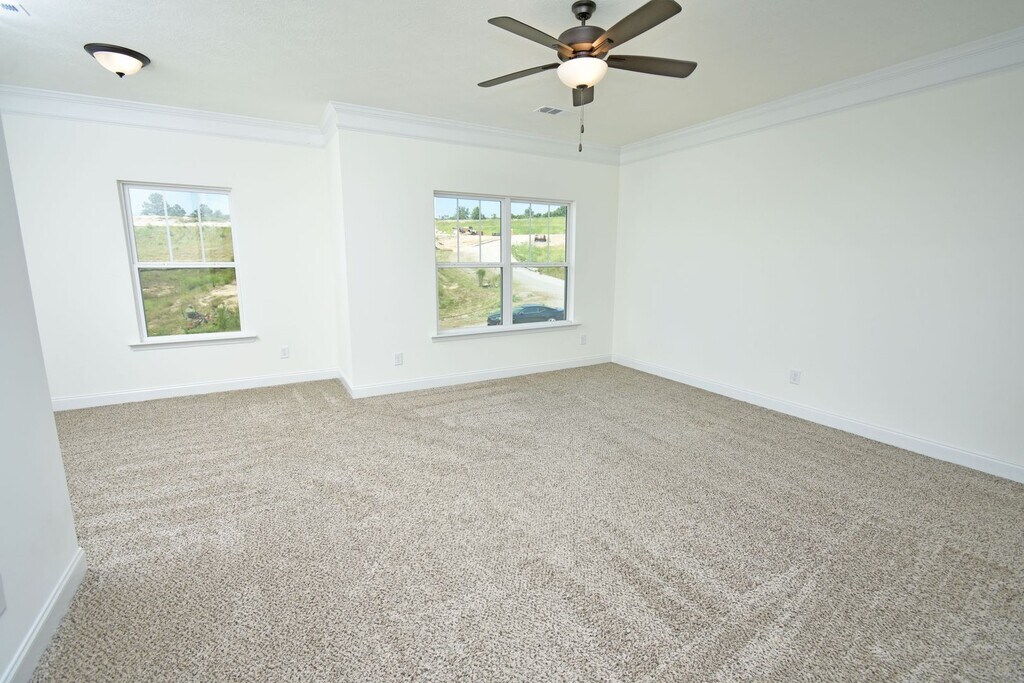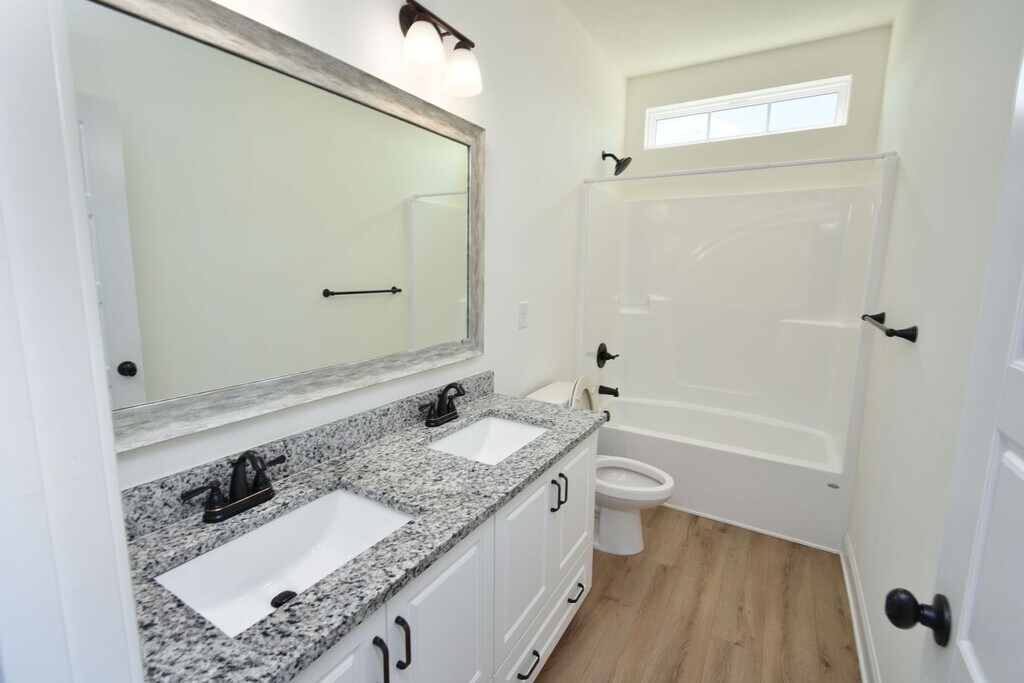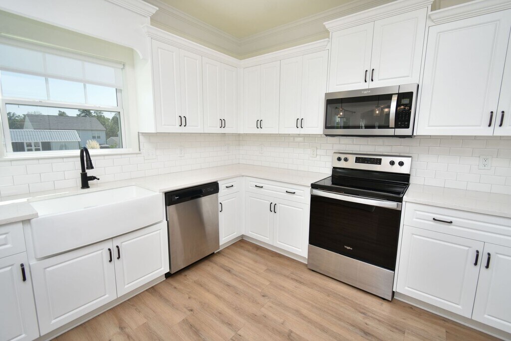 This beautiful home welcomes you with a large open foyer, formal dining room, and spacious family room. The owner’s suite features a huge walk-in closet and spa-inspired bath with garden tub, custom backsplash, glass-enclosed shower, and double vanities. Enjoy custom kitchen cabinetry with granite countertops, matching backsplash, recessed & pendant lighting, and Whirlpool stainless steel appliances. Elegant oil-rubbed bronze fixtures, decorative stone exterior, LVT flooring on the main level, stain-resistant frieze carpet, and an energy-saving radiant roof board complete this must-see home. Sprinkler system on all four sides!