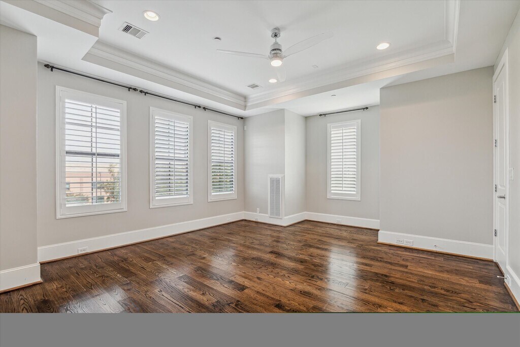 Stunning freestanding corner home that lives like new construction in a prime Houston location. This elegant residence features hardwood floors,soaring ceilings,plantation shutters,and a cozy gas fireplace that create a warm,inviting atmosphere. The gourmet island kitchen offers marble countertops,stainless steel appliances,and ample storage,perfect for everyday living and entertaining. The spacious primary suite includes a luxurious spa-like bath,complemented by two additional bedrooms and a separate game room with a refrigerator. Additional highlights include two guest parking spaces,a gated front patio,security cameras,and a wall-mounted iPad control system. Conveniently located near Mark Twain Elementary School,Pershing Middle School,Rice University,the Texas Medical Center,and Downtown Houston,offering exceptional access to top schools,major employers,and premier amenities. MLS# 81738452