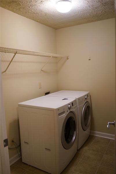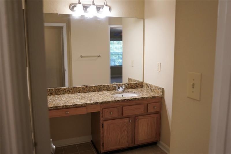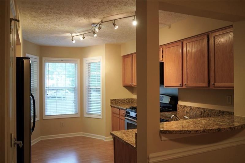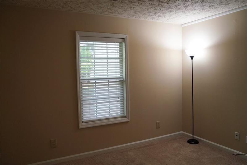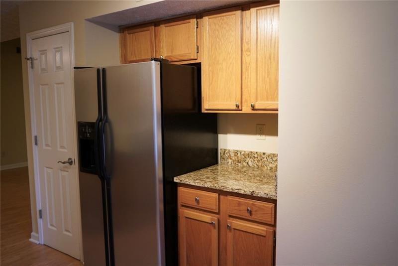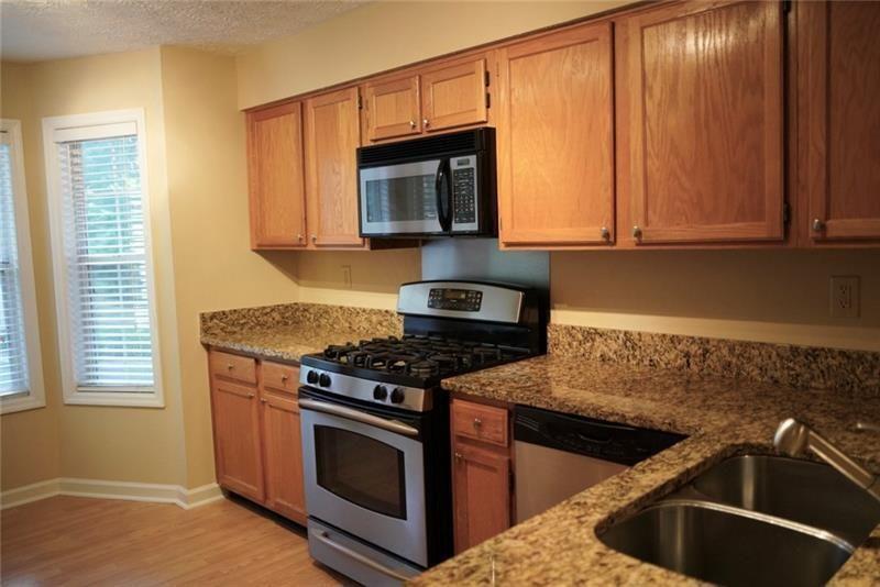 Fantastic 3-bedroom 2 bath end unit condo in award-winning school district! New paint! New carpet! Open floor plan features vaulted great room with fireplace,eat-in granite kitchen with stainless appliances,spacious master on main,plus a nice-sized secondary bedroom,laundry room with washer/dryer,and covered deck overlooking a beautiful,wooded area. The second-floor features another generously sized secondary bedroom with its own bath. Quiet community with swim/tennis and a fitness center. Minutes to the Chattahoochee River National Recreation Park,shopping,dining,and I-285. SMALL PETS ONLY.