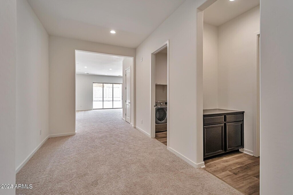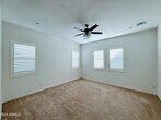 Bright and modern,this nearly three-year-new,north-facing,single-level home in The Preserve at San Tan offers comfortable and stylish living in one of San Tan Valley's newer Toll Brothers master-planned communities. You'll enjoy 4 spacious bedrooms (all with walk-in closets),2 full baths,plus a powder room. The split floor plan with 10-foot ceilings creates a welcoming,open layout with lots of natural light. Plantation shutters throughout add classic detail. The gourmet kitchen features gas cooking and an oversized pantry you've got to see ? plenty of space for meal prep and storage. The living room opens with a multi-slider that floods the space with light and visually connects indoor living to the outdoors. Upgraded carpet and luxury vinyl plank flooring combine comfort and easy maintenance. A three-car garage includes an EV charging outlet for electric vehicles. This rental also comes with a refrigerator and washer/dryer. Step outside to a low-maintenance backyard finished with artificial turf,gravel,and travertine - perfect for relaxing and entertaining without the hassle. Location is a big plus. The Preserve at San Tan is a Toll Brothers luxury community with resort-style amenities including dog parks,basketball and bocce courts,amphitheater,playgrounds,walking and biking trails,pickleball,community garden and more,all set against scenic San Tan Mountain views with great access to shopping,dining,recreation and quality schools. Available March 1st.