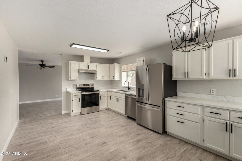 No HOA and large corner lot. Welcome to this move-in-ready home that has been tastefully remodeled! Updated interior boasts fresh paint,wood-look tile flooring,bountiful natural light,ceiling fans,and lovely archways. Large living room offers a cozy retreat,excellent for creating lasting memories with loved ones. Host dinner parties in the formal dining room,or cook with ease in the upscale kitchen,complete with stainless steel appliances,quartz counters,ample cabinetry,and direct access to the back patio. Head to the primary bedroom to find a walk-in closet,a French door leading to the patio,and a private bathroom with dual sinks. Spacious backyard provides a screened-in patio,pergola,and a sparkling pool perfect for the warm summer days. Don't let this gem slip by! Hurry!