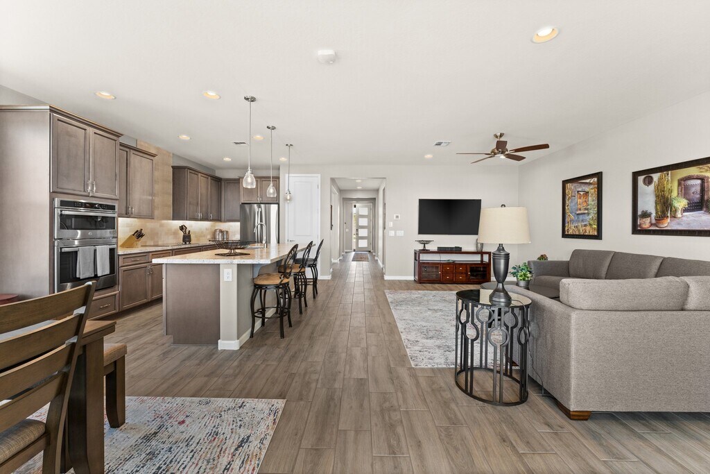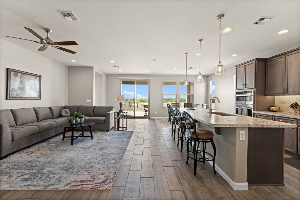 AVAILABLE UNTIL Nov 31, 2025 and again BEGINNING MAY 1, 2026 WICKENBURG RANCH. Beautifully furnished with a serene vibe welcome you to this newly built 2 bed, 2.5 bath, with Den and spacious 2-car garage. Room darkening shades are installed in the bedrooms. The well-appointed kitchen features wall ovens/microwave/convection oven combo. The HOA takes care of the landscaping. Enjoy some time on the patio with wonderful views to the south and Vulture Peak. Available 6/15/2025. Summer price ($2800) May 31 thru Sept 31 Winter price ($3500) Oct Thru May.
