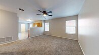 As you enter, you’re welcomed by an open and inviting living room, perfect for relaxing or entertaining. The kitchen boasts a breakfast bar, ample counter space, and a cozy nook ideal for a kitchen table. The split primary bedroom is located at the back of the home, offering extra privacy. The primary suite feels like a true retreat with a walk-in closet, vanity, and a bathroom featuring both a shower and a soaking tub. Two additional bedrooms are located at the front of the home, along with a guest bathroom—perfect for a growing household. Recent updates include brand-new carpet and fresh interior paint throughout and vinyl planked flooring. The community amenities are exceptional, featuring a fishing lake, walking trails, multiple pools, a playground, and a fitness center.