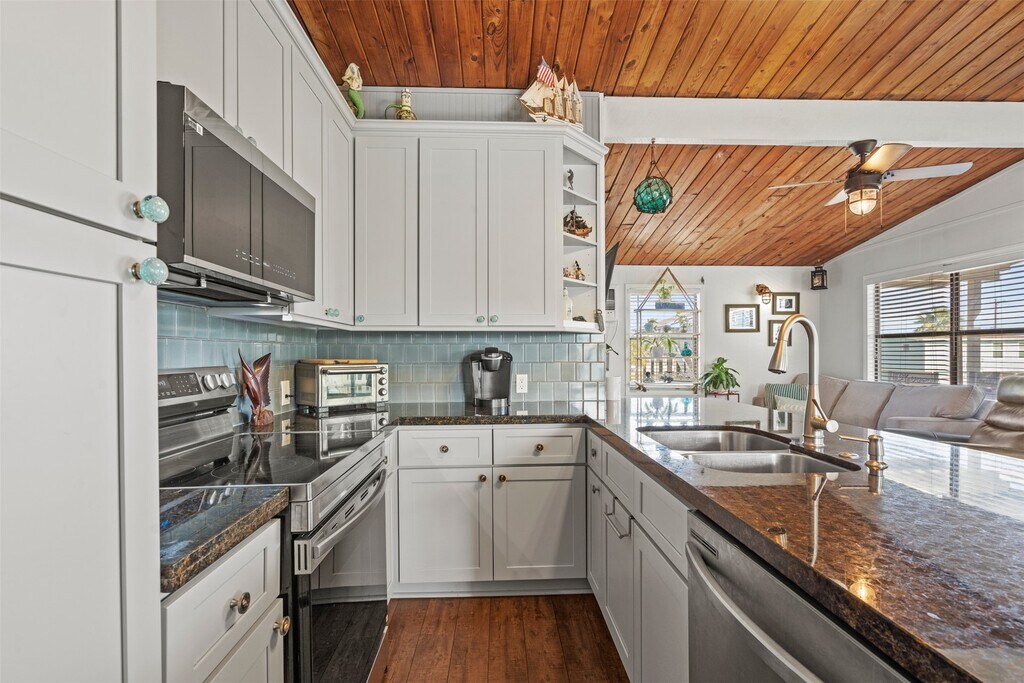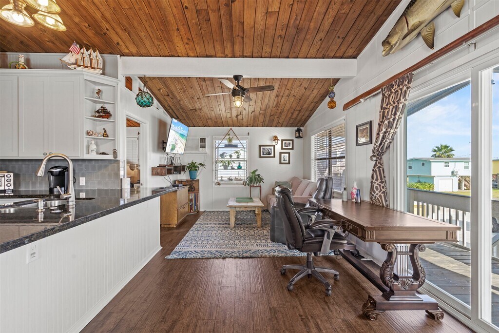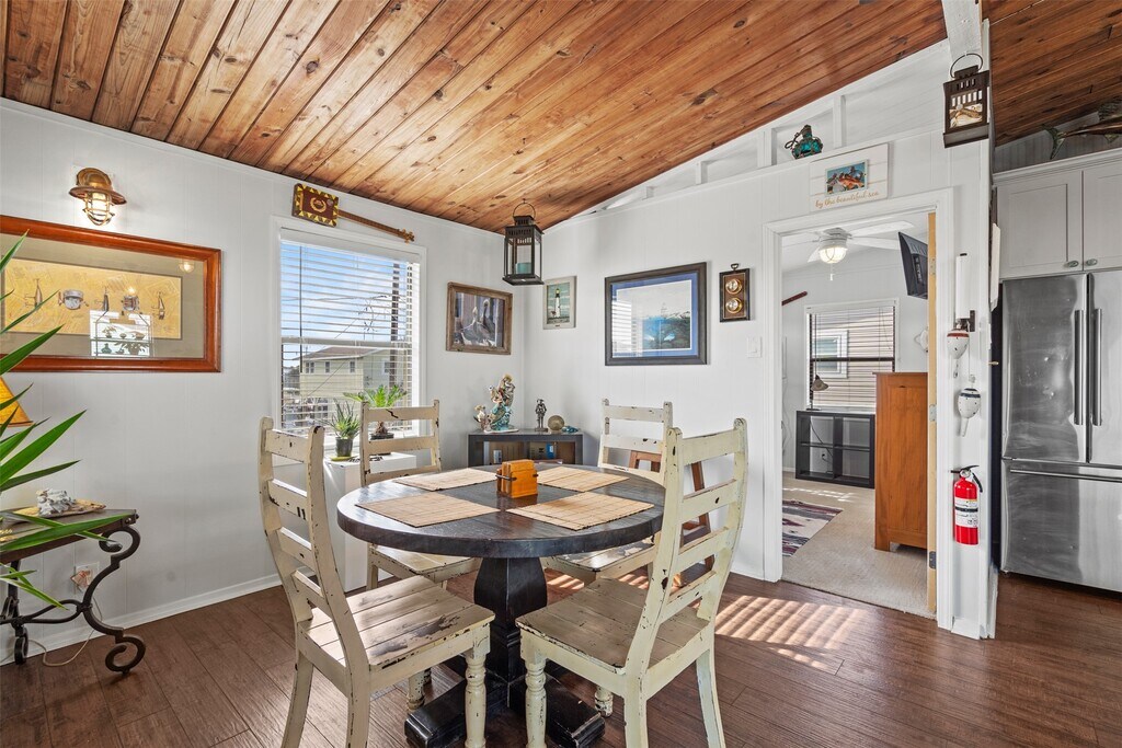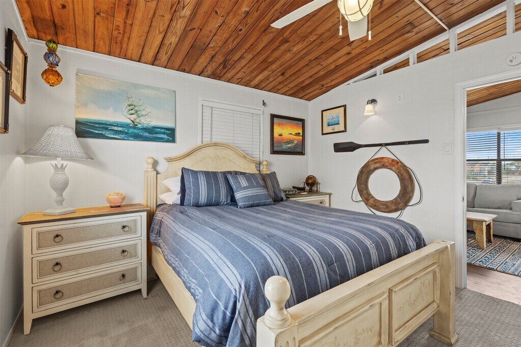 Charming cabin featuring shiplap ceilings,an open-concept living and dining area,and an updated kitchen. The home includes two cozy bedrooms connected by an updated bathroom,plus a whole-house generator and storm shutters for added convenience. Enjoy the downstairs entertaining space and a spacious deck with views of the boat basin. A short drive takes you to the boat launch,and beach access is just a quick golf cart ride away. Neighborhood amenities include a pickleball/tennis court,park,private fishing pier,playground,bait camp,marina,nearby stores,and the West End Marina! This property is fully furnished and move-in ready. Will consider all utilities paid with increased rent. Available November 1,2025 MLS# 20524202