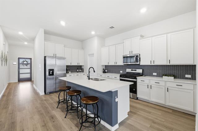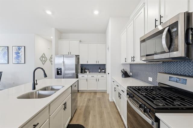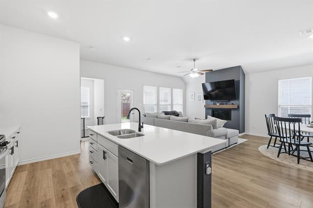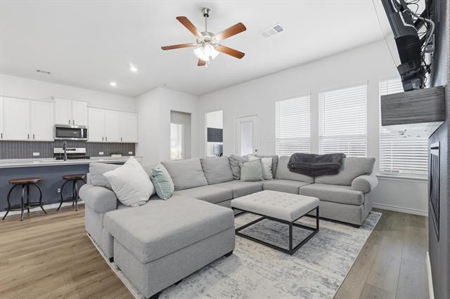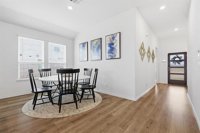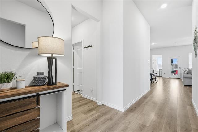 Welcome to this beautifully built 4-bedroom, 2-bath home in Aubrey, completed in 2023 and thoughtfully designed for modern living. With a two-car front-facing garage and a spacious, open-concept layout, this home offers the perfect blend of style, comfort, & functionality. Step inside to a bright & inviting living space where the living room, kitchen & dining area flow seamlessly together—ideal for everyday living & entertaining. The kitchen features a crisp white design, stainless steel appliances, generous counter space & a large pantry with ample shelving. Just off the kitchen, a built-in desk nook provides the perfect spot for working from home, studying, or staying organized. The living room is anchored by a unique fireplace with a gas starter, adding warmth & character. The private primary suite offers a relaxing retreat with dual sinks, a soaking tub, separate standing shower & a spacious walk-in closet. 3 additional bedrooms with cozy carpet provide flexibility for family & guests. A full-size utility room easily accommodates washer & dryer needs. Outside, enjoy a generously sized, fenced backyard with a covered porch—perfect for outdoor dining, relaxing evenings, or casual gatherings. Located in a vibrant, amenity-rich community, residents enjoy resort-style pools with rotating lifeguards on duty, full tennis courts, basketball courts, pickleball courts, fishing ponds, multiple playgrounds, hiking and biking trails, a dog park, amenity centers & pavilions complete with big-screen TVs & fireplaces—ideal for hosting gatherings or watching the big game. The neighborhood also features two on-site elementary schools & is within walking distance to community amenities, offering unmatched convenience. Plus, you’re just minutes from current & upcoming shopping, dining & major highways, making everyday living effortless. This is a rare opportunity to lease a nearly new home in a thriving, family-friendly community. Schedule your showing today!