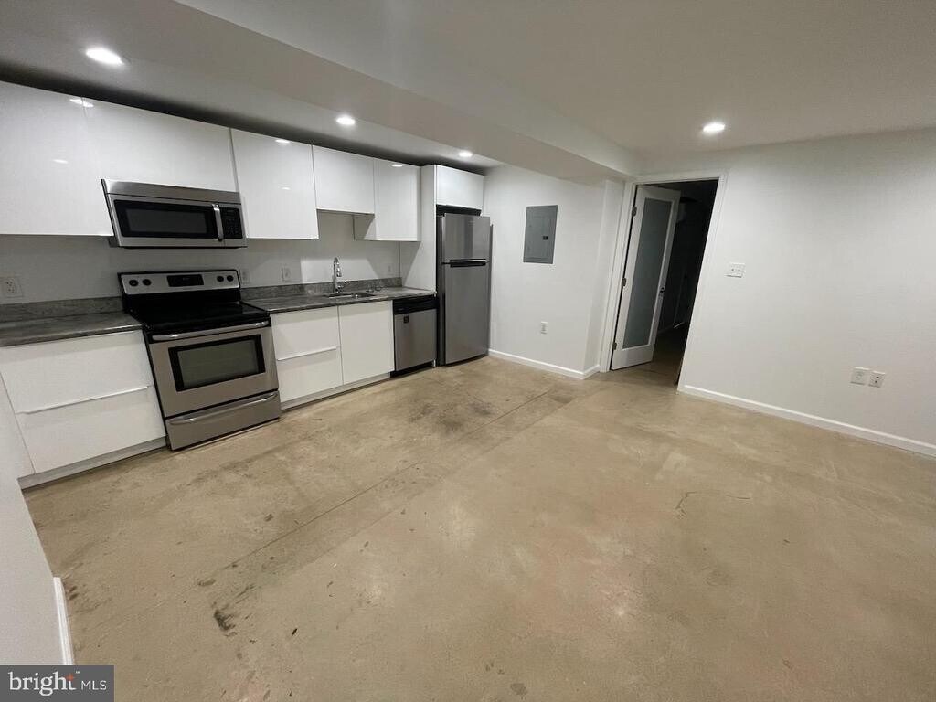 This beautifully renovated 1-bedroom, 1-bathroom English basement apartment, updated in 2015, seamlessly combines modern living with the charm of Petworth's residential neighborhood. The kitchen is a bright, modern space featuring granite countertops and stainless steel appliances, and it opens into a combined living area, creating a cozy environment for both relaxation and entertaining. The apartment is adorned with crisp white walls and a stylish poured concrete floor. The bathroom offers a spa-like experience with a tub and shower combo. The bedroom serves as a quiet sanctuary, featuring a window, a generous closet, and an adjoining private laundry/mud room that provides access to the back of the property. All utilitiesâelectricity, gas, water, and internetâare included in the monthly rent, making budgeting straightforward. The location is ideal, with a nearby Safeway, a variety of local restaurants and entertainment options, and the Metro less than half a mile away. Schedule your tour today before this opportunity slips away!