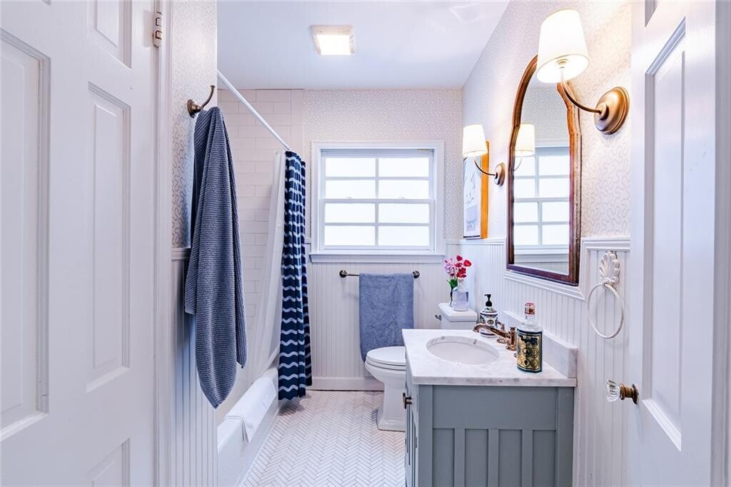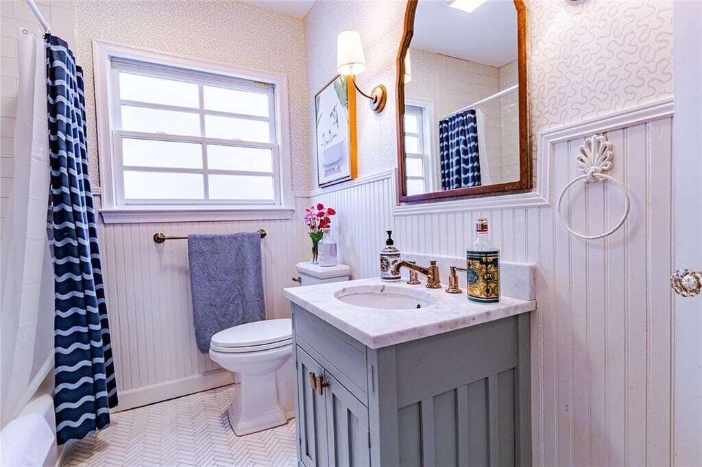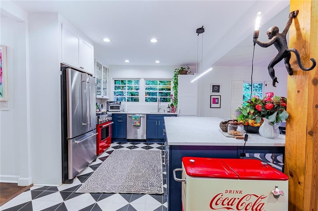 Beautifully renovated North Buckhead cottage offering a light-filled open floor plan and thoughtfully curated finishes throughout. The inviting hilltop setting is framed by lush landscaping,Hardiplank siding,and a welcoming front porch with stone accents. Inside,hardwood floors run throughout the main living spaces. The fireside living room flows seamlessly into a spacious family room featuring brick flooring,ca cozy double-sided fireplace that anchors the living areas and adds architectural warmth and character. Plantation shutters complete the timeless aesthetic. The chef’s kitchen anchors the home with white cabinetry,marble and stone countertops,stainless high end appliances,and an oversized breakfast bar that opens effortlessly to the family room—creating an ideal setting for entertaining. A sun-filled dining room sits just off the kitchen. A private park-like courtyard sits just off the kitchen hallway and owner’s suite,creating a tranquil outdoor room perfect for morning coffee or evening gatherings. Privately positioned at the rear of the home,the oversized owner’s suite offers a walk-in closet and a renovated spa-inspired bath with marble vanities and a large walk-in shower. Two secondary bedrooms feature custom closets and share a beautifully updated bath with new vanity and travertine finishes. Additional highlights include newer windows,roof and gutters,a convenient half bath on the main level with laundry room,and a finished office or den in the basement. The unfinished portion of the basement provides excellent storage. The walkout flat backyard is fenced. Located in the sought-after Sarah Smith school district and just moments from Little Nancy Creek Park and Path 400. A rare North Buckhead opportunity combining classic cottage character,thoughtful renovations,and an exceptional walkable location. MLS ID 7757066