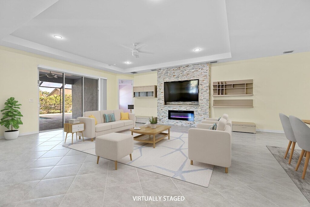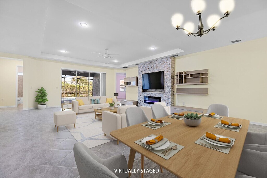 Welcome to this stunning 4-bedroom, 3-bathroom home located in beautiful Cape Coral, FL. This property boasts a private pool, perfect for enjoying the Florida sunshine, relaxing with the family and or watching the gorgeous sunsets. Inside, you'll find carpeted bedrooms that add a cozy touch to the sleeping spaces. The master suite is a true retreat, complete with a luxurious soaking tub for ultimate relaxation. The home features a split bedroom plan, offering privacy and space for everyone. The large screened lanai is an ideal spot for outdoor dining or simply enjoying the view. Inside, the tile floors are both stylish and easy to maintain. The tray ceilings with recessed lighting add a touch of elegance to the home, creating a warm and inviting atmosphere with the fireplace. This home truly offers a blend of comfort and style. LAWN MAINTENANCE INCLUDED POOL MAINTENANCE INCLUDED Property Manager: Carolyn Alonso, please call for a private showing. Rent: $3,995 Application: $60 per adult Security Deposit: $3,995 ****This property is managed by Rossman Realty Property Management who is hired by the owner of the property. Rossman Realty Property Management does not advertise on Craigslist, does not ask you to bank transfer funds and does not have a phone number with an area code out of area. We do require all applicants to apply on our website $60 Non-Refundable Application Fee per adult. No deposits or rent will be asked to be paid until your application is filled out on our website and approved by the property manager/ owner of the property.****