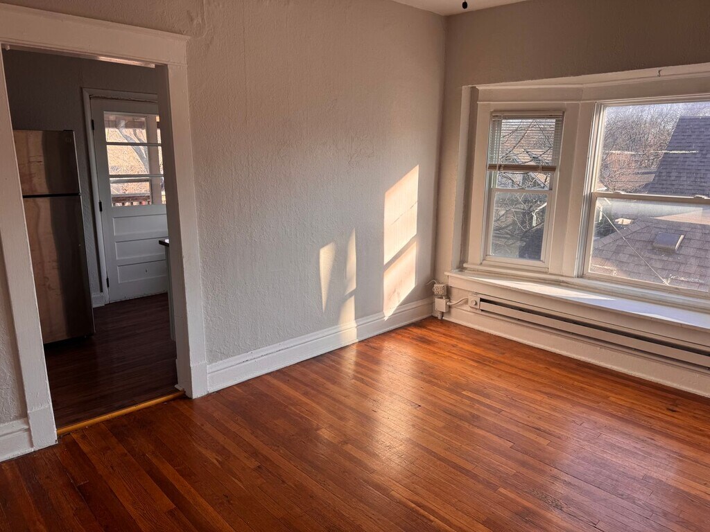 Located in the vibrant heart of Kansas City, MO, this apartment offers a blend of comfort and style. The apartment features two spacious bedrooms and a full bathroom, perfect for those who value space and convenience. The updated kitchen, equipped with stainless steel appliances and a dishwasher, is a dream for anyone who enjoys cooking. The hardwood floors add a touch of elegance and are easy to maintain. The neutral paint colors throughout the apartment provide a calming and modern aesthetic. Enjoy the outdoors from the comfort of your private, screened-in porch, a perfect spot for relaxation. The apartment also includes off-street parking, adding an extra layer of convenience. Experience the perfect blend of modern living and comfort in this beautiful apartment.