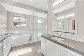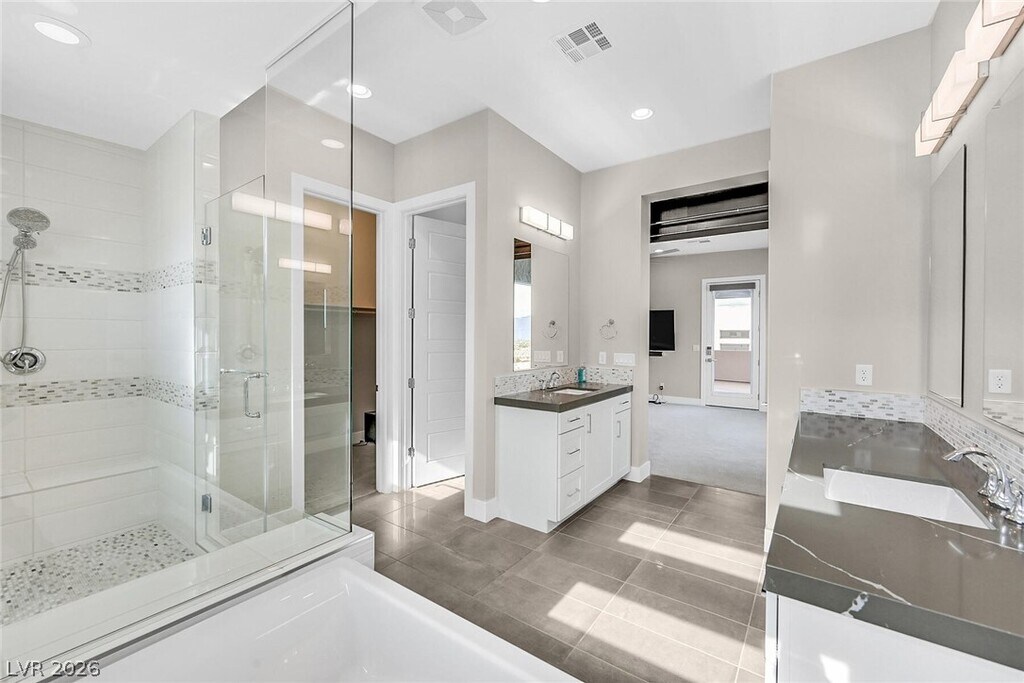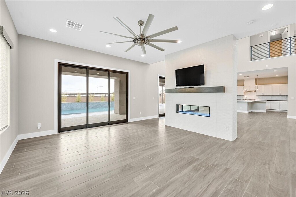 This modern 3 bed /3 bath luxurious retreat is a must-see home with stunning mountain, strip and city views! A stunning open and bright floorplan and is centered around a dual sided fireplace. The kitchen is an entertainer's delight; featuring shaker door cabinetry, soft close drawers, quartz countertops, a huge kitchen island, stainless appliances, Thermador refrigerator/freezer, and a spacious walk in pantry. Beautifully designed primary suite with balcony, modern and bright primary bath with separate shower and freestanding soaking tub. Large sliding doors open to the professionally designed backyard that features large pool, infinity edge hot tub, 3 waterfalls, and fire feature /bar. Spacious covered patio with built in outdoor kitchen. This one won't last, make your appointment today. Home is offered fully furnished and available after 6/1/2026