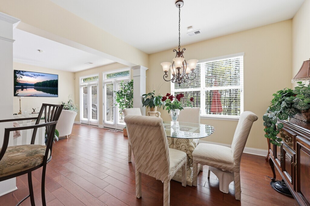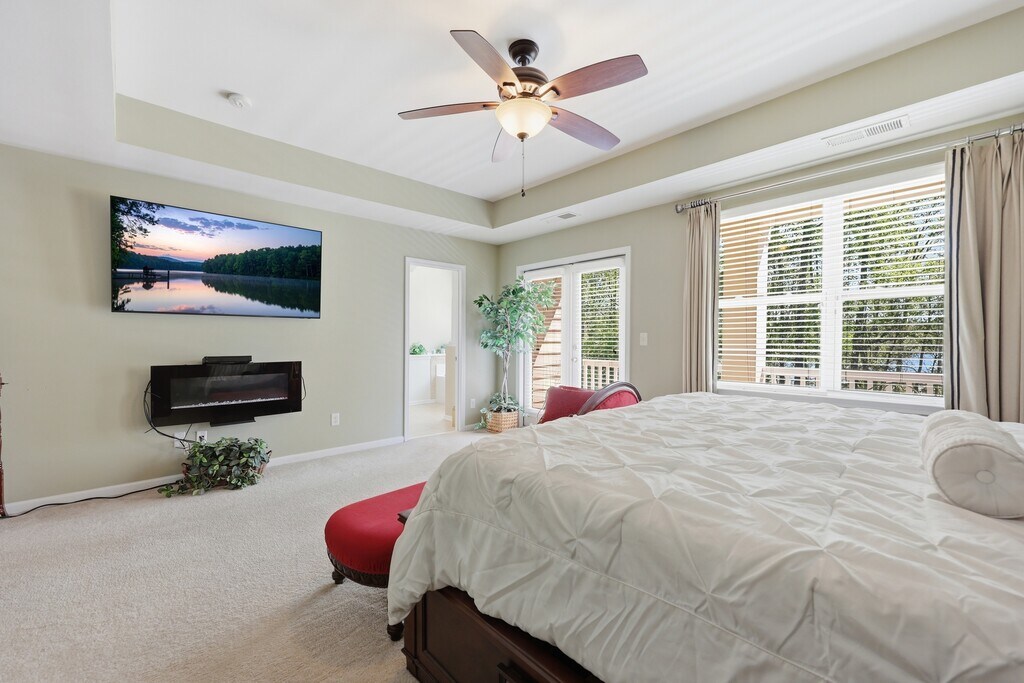 Tucked away on a quiet cul-de-sac, this lakefront townhome offers incredible views of Lake Wylie and a layout designed for both comfort and functionality. The main level features an open-concept design with 9-foot ceilings, durable hardwood flooring, and a spacious living area centered around a cozy fireplace. The kitchen is well-appointed with granite countertops, stainless steel appliances, and ample cabinet space, making it ideal for both everyday living and entertaining. Large windows throughout the home bring in plenty of natural light while showcasing the peaceful water views. Upstairs, the primary suite provides a private retreat with its own balcony overlooking the lake, while an additional bonus room offers flexible space for a home office, guest area, or second living space (also with its own balcony access). Conveniently located just a short drive from Charlotte Douglas International Airport and Uptown Charlotte, this home blends tranquil surroundings with easy access to the city. The community caters to an active lifestyle with walking trails, shoreline access, and optional boating amenities, all while providing low-maintenance living with exterior upkeep and landscaping included. Tenant responsible for all utilities. Unfurnished Rental. Pet fee is $250 per pet. Additional $30/month per pet for pet rent.