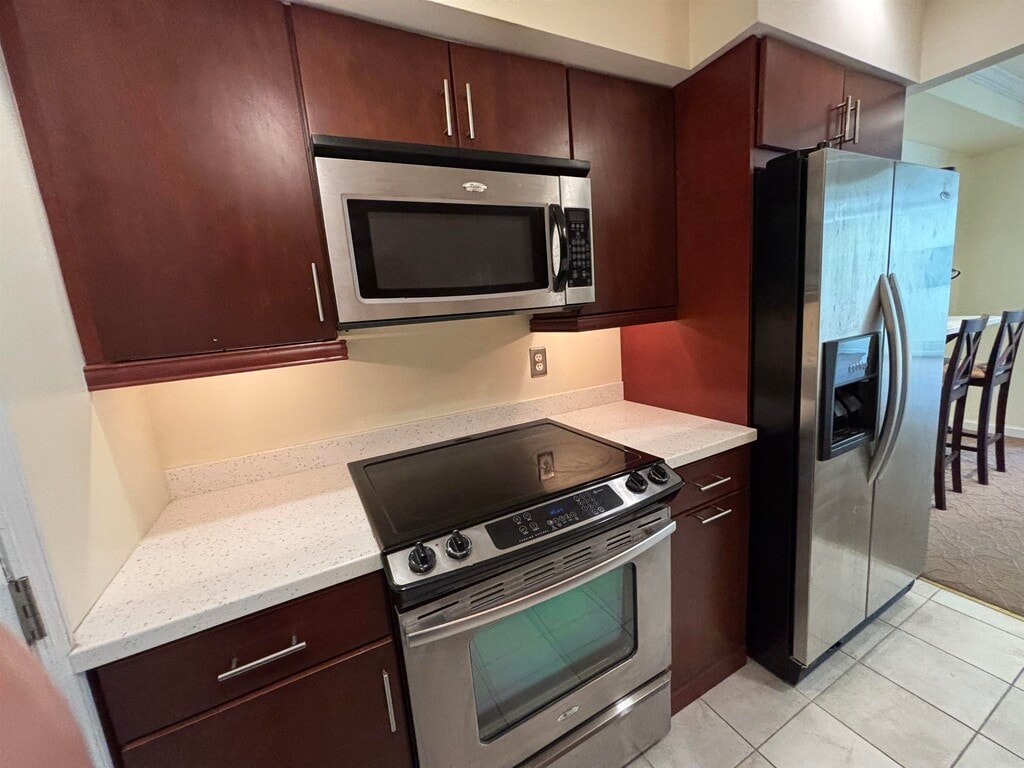 Luxurious condo in The St. James building ready for a new tenant! Two bedrooms, one with the primary having a walk-in closet and a private, full bathroom. Located on the 9th floor with large windows that allow you to see the exquisite beauty of Downtown Huntington and the Ohio River. You will love the appliance filled kitchen with solid surface counter tops. The laundry room is equipped with stackable washer/dryer. Enjoy the amenities of the of The St. James, including two oversized parking spaces in the garage, exercise facility with hot tub/sauna, meeting room & rooftop deck
