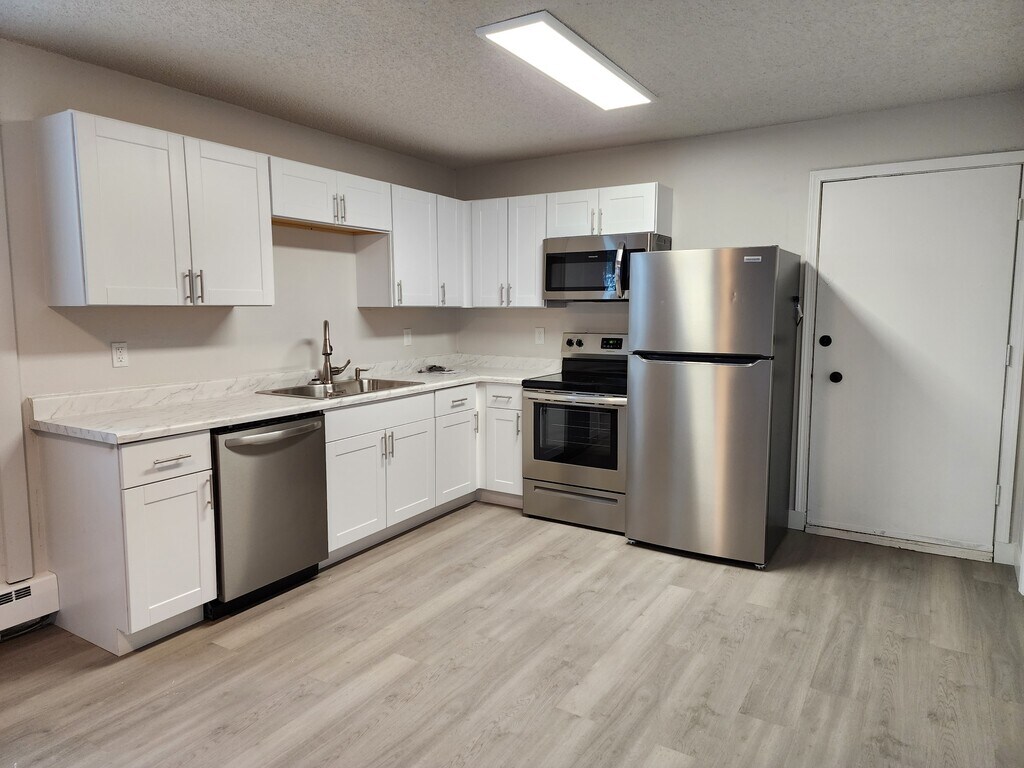 Fully renovated 2-bedroom, 1-bathroom apartment located in the heart of North Pole, offering both convenience and comfort. This unit features an open-concept living and dining area, updated kitchen and bathroom, and durable LVP flooring throughout. Enjoy ample storage with multiple closets, direct access to an attached unheated garage, and easy access to shared laundry facilities. The building also includes a secured entry and indoor mailboxes. A flat monthly utility fee of $250 covers heat, water, and sewer, while tenants are responsible for electricity through GVEA. No pets