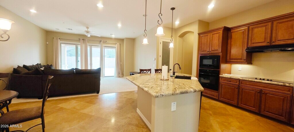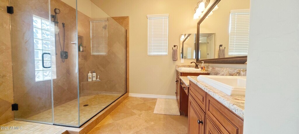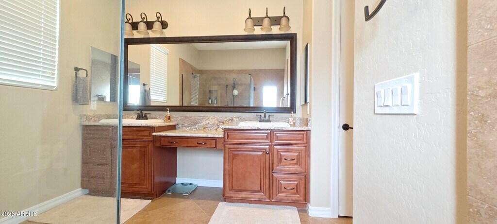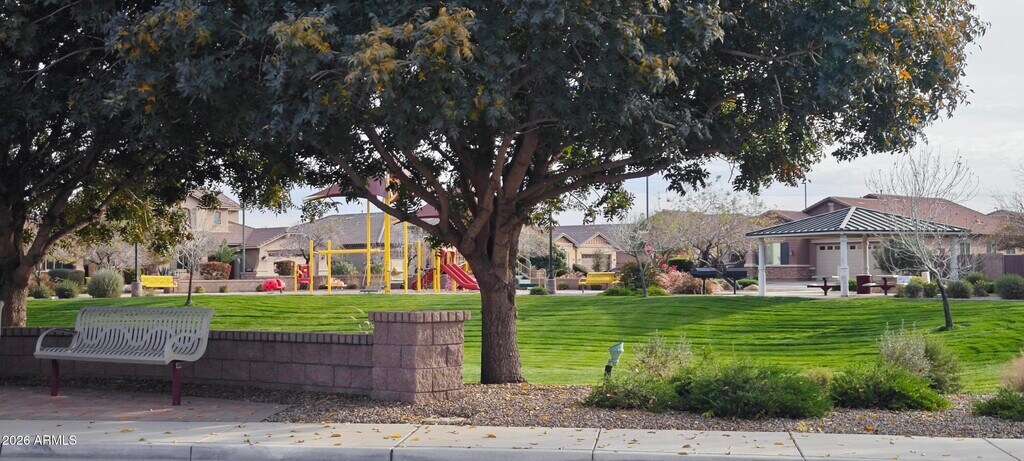 Do not miss this beautifully maintained single-level Fulton Home located in the desirable Autumn Park community. This property has been used as the owner's vacation home and lightly occupied over the past 10 years,resulting in excellent condition throughout. Situated on a premium corner lot,it offers spacious front and back yards,with the community park just steps away. A paved driveway leads to a three-car garage,and numerous upgrades throughout the home create a truly luxurious living environment. Travertine and high-end carpet flooring run throughout the property. The chef's kitchen features stainless refrigerator,Build-in oven and microwave,granite countertops,high-end cabinetry,and a large pantry. The gorgeous primary suite includes a walk-in closet and a spacious primary bath with double sinks and a frameless glass shower. The backyard is largely finished with travertine flooring,perfect for outdoor enjoyment. Additional features include a water softener system. The lease includes bedroom furniture and family room furniture. This is a must-see home.