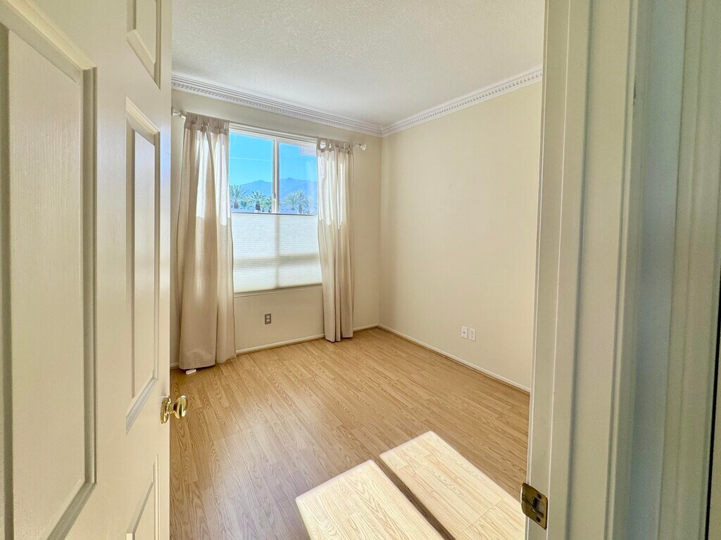 Great opportunity to rent a bright and beautiful,well maintained 2 BDR,2 BA upper level condo in the heart of Palm Springs! With Mountain views from every room,this property features a spacious master bedroom suite,a secondary bedroom or office with a guest bathroom,a kitchen with granite tile countertop and counter seating,new refrigerator,balcony with great views,inside laundry room,and assigned carport steps away from the condo. A popular Palm Springs community,La Palme offers 6 pools and spas,3 tennis courts and manicured green landscape. Close proximity to downtown Palm Springs,the Convention center,Palm Springs Airport and Spa Casino. La Palme is a smoke free community. A must see!