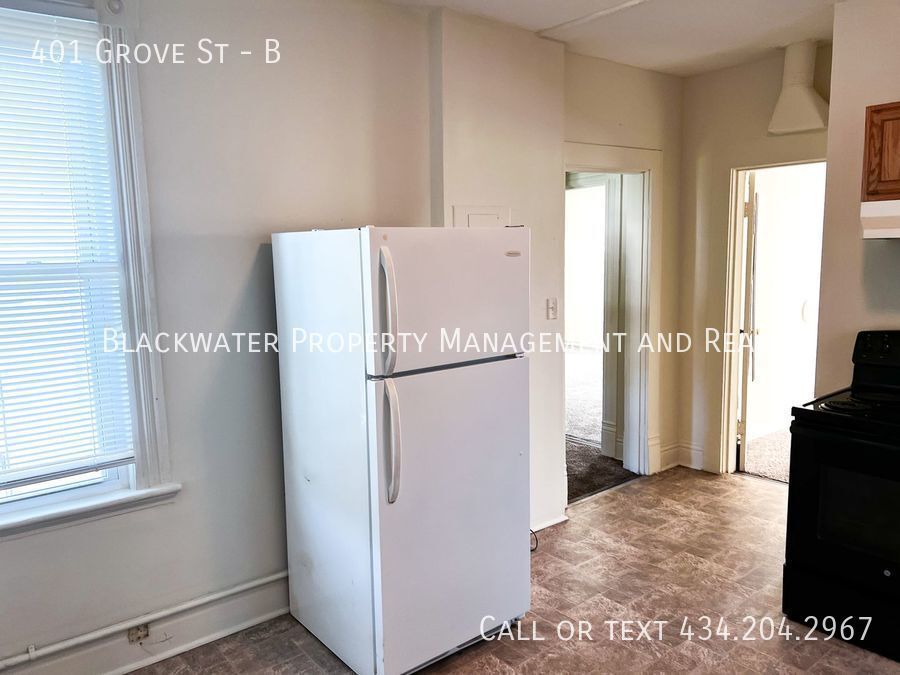 Welcome Home to 401 Grove Street! This upper level 1 bedroom, 1 bathroom apartment is centrally located close to Fort Avenue, Wards Road, Downtown Lynchburg and all your shopping, dining, and convenience needs. Through the entryway find the spacious eat-in kitchen off to the left with appliances including refrigerator and range. For your convenience, the washer and dryer (as is) can be found in the kitchen as well! Next, enjoy a large living room with plenty of windows to allow a flood of natural light, as well as the full bathroom. The spacious bedroom is located next to the living room with ample closet space. Tenant responsible for all utilities This property does not accept pets. Schedule your showing today! None