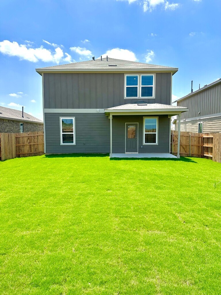 This brand-new 4-bedroom, 3-bath home offers 2,034 sq. ft. of stylish living space designed for comfort and convenience. The kitchen features stainless steel appliances, granite countertops, walk-in pantry, and wood flooring in the main areas. The spacious primary suite includes a walk-in closet and private en-suite with tiled shower. Added perks include in-home washer & dryer, smart thermostat, energy-efficient windows, and a 2-car garage with extra storage. Enjoy a fenced backyard with covered patio and sprinkler system—perfect for pets, play, or entertaining. Community amenities include a junior Olympic lap pool, lazy river, kids’ splash pad, fishing ponds, dog parks, and miles of scenic trails. Pets allowed. Sunfield