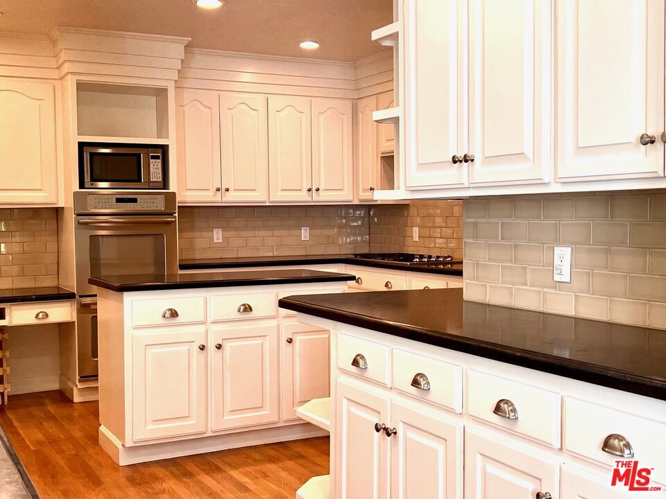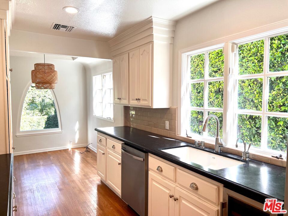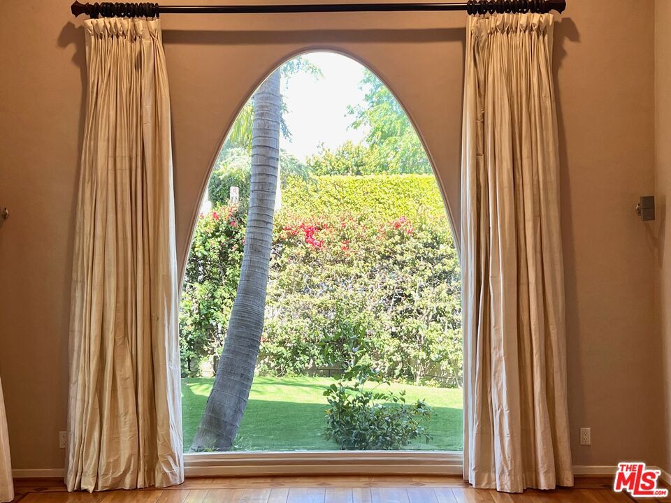 This classic Spanish home is situated on one of the most desirable streets in Beverly Grove, just steps away from the area's top-rated restaurants, shops, and the Beverly Center. With 4 spacious bedrooms( 2on Suite) and 3.5 bathrooms, this Spanish gem features a gorgeous 20-foot coved ceiling and hardwood floors throughout. The living room is equipped with a surround sound system and a cozy fireplace, creating the perfect space for relaxation and entertainment. The large renovated cook's kitchen is a chef's dream, featuring brushed granite countertops, an island, stainless steel appliances, ample cabinet space, and a breakfast area. The dining room opens up to a beautiful outdoor entertaining space with a built-in fire-pit and speakers, perfect for hosting gatherings. The enormous primary suite boasts a vaulted ceiling, double vanity, soaking tub, and double walk-in closets with built-ins. The bathroom is wired for a flat panel TV and features speakers in the shower. French doors lead to a private outdoor space, allowing for a tranquil and peaceful retreat. The property is fully gated with bougainvillea and hedges, providing ample privacy. The lush and professionally landscaped yard features artificial grass and charming fruit trees. Additionally, the property includes a detached 2-car garage with direct street access and plenty of street parking. Overall, this unique and beautiful property offers the perfect combination of luxury, comfort, and convenience. MLS# 25620453