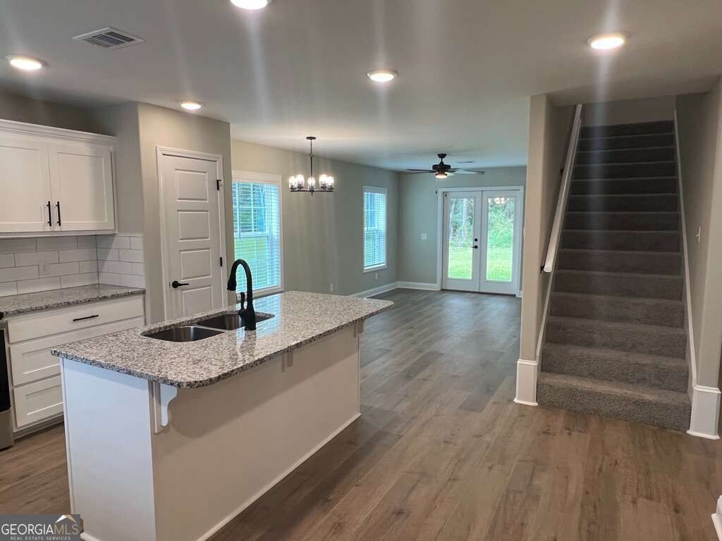 This brand new two story, spacious 3BR/2BA brick duplex offers granite countertops with kitchen island and double sink with high rise faucet, oil rubbed bronze fixtures, stainless steel appliances, tile backsplash, pantry and soft close cabinetry. Large combined LR/DR area, LED lighting throughout, 2 faux wood blinds, laminate flooring with carpeted bedrooms and tile bath flooring. Two bedrooms downstairs and an entire master suite upstairs with large walk in closet, plenty of storage and an enclosed commode/shower combo. Laundry room downstairs. With room to park two vehicles in front, enjoy the covered back porch through a beautiful set of french doors. This one won't last long."