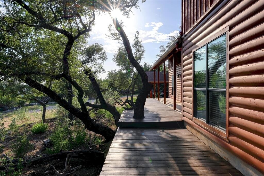 Serene 3-Bed / 2.5-Bath Country Home for Rent – 13 Private Acres in Gated Madrone Canyon Ranch, Dripping Springs ISD Wake up to panoramic Hill Country views on this tranquil, fully-equipped home nestled on nearly 13 fenced acres in the gated Madrone Canyon Ranch — just minutes from Pedernales Falls State Park and the vibrant brewery, winery, distillery and dining scene along Fitzhugh Road. Enjoy 2,310 sq ft of light-filled living space with a vaulted wood-beamed great room, stone fireplace, and an open floor plan that flows from an updated island kitchen into the dining and living areas — ideal for family dinners or entertaining. The kitchen features Saltillo tile floors, stone counters, stainless appliances, recessed lighting, and bar seating under a chandelier. The main level includes a guest bedroom (with separate entrance) and full bath — perfect for extended stay guests or a roommate. The serene primary suite offers its own ensuite bath and walk-in closet plus a bonus room that could serve as an office or storage. A spiral staircase leads to a vaulted third bedroom with its own modern full bath and private water heater — a quiet retreat for a teen, guest or work-from-home space. Enjoy convenience with main-floor laundry and even a wine fridge. Outdoors, relax on the expansive front deck or shaded back porch. The fenced yard includes room for playscapes, a chicken coop, hammocks or tree-forts — truly country-style living. A detached barn with a ready-to-finish second floor offers extra storage or potential workspace. Conveniently located just ~30 miles from Downtown Austin, this home blends peaceful seclusion, space to roam (or grow), and access to nature, community, and top-rated schools (Dripping Springs ISD). Available for lease now. Reach out to schedule a private tour and discover your new Hill Country home.