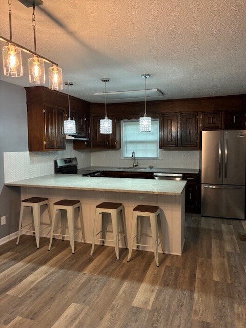 Welcome to this 3-bedroom, 2-bath brick home set on a spacious lot in the heart of Burgaw. From the moment you arrive, you'll love the oversized front and back yards that are perfect for family gatherings, cookouts, and entertaining friends. Out back, a covered patio with a swing offers the ideal spot to relax and enjoy the peaceful setting. Inside, the open floor plan features a bright living space centered around a large kitchen island with bar seating for four. The kitchen is beautifully finished with stainless steel appliances and upgraded light fixtures. The LVP flooring that flows throughout the home, tying each room together with modern style and easy maintenance. Burgaw is a charming, quiet town known for its small-town feel and community spirit. This home gives you the best of both worlds, with its peaceful living and the convenience of a community on the rise.