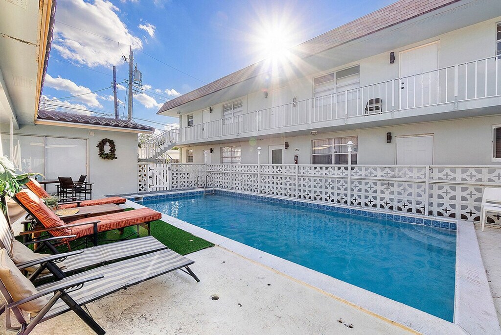 Keep it simple at this peaceful and centrally located place. Discover this stunning, remodeled 2-bedroom, 2-bathroom apartment on the 2nd floor of a walk-up building in beautiful Pompano Beach. With its contemporary design, you'll feel at home in this inviting space. This newly remodeled condo features an open floor plan, offering a seamless flow between the living areas. Enjoy the large community pool and a private outdoor patio area, perfect for taking in the relaxing eastern ocean breeze. Pets are welcome, making it easy to bring your furry friends along for the adventure. Within walking distance of shops, dining, parks, and the beach, as well as the Pompano Pier, this apartment is ideally situated for those who love to explore and enjoy the local attractions. This is a 2nd floor walk-up apartment, so be prepared for stairs.