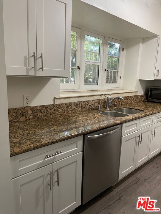 A remodeled unit of about 1,550 sq ft in the downstairs duplex, with two bedrooms and a den that can be used as a bedroom. The kitchen has beautiful cabinets with new granite countertops. Refurbished hardwood floors plus laminated floors, a washer and dryer, a wall air/heater, plus another central heating system. It requires a good credit history. There is a discount for fewer people. MLS# 26672671