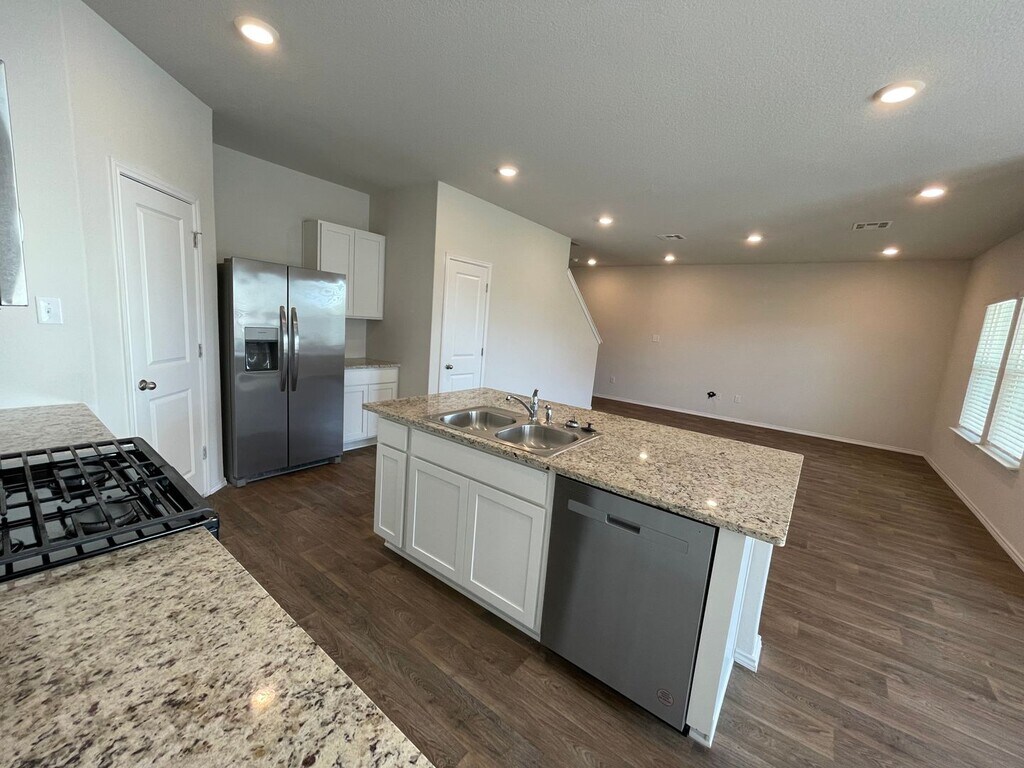 This beautiful home built in 2022 is a two-story with 4 bedrooms, 2.5 baths, and 2-car garage. The kitchen includes granite counters, stainless steel appliances, and spacious pantry. The wide, inviting staircase leads to the primary suite, and three secondary bedrooms and bathroom. The private main bedroom features an attractive ensuite with walk-in shower, water closet, and plenty of storage space. Step outside to your private backyard retreat, ideal for relaxing after a long day or hosting gatherings with friends and family. The community playground, splash pad and park with picnic tables are just minutes away down the street, conveniently located for you to enjoy. This home is within walking distance, about half a mile, to the Medina River Natural Area which is great for hiking and biking, as well as lakes. It is also in close proximity to the Toyota plant, schools, Texas A&M-San Antonio University, shopping, dining, and golf courses! Easy access to major highways such as loop 410, IH-35 and loop 1604.