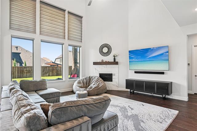 Fifty percent off first month rent with an approved application by October 31 -- a savings of $2950!! NORTH-facing and bathed in natural light, this spacious 5-bedroom, 4.5-bath home invites you to start your mornings on the welcoming front porch, rocking gently as the sunrise colors the sky. In the evenings, watch the sunset while the kids play in the oversized backyard or walk to the nearby playground and Bryant Elementary, just steps away. Inside, a private office to the left offers a quiet space for remote work, while a guest suite with a private bath and the primary suite are conveniently located downstairs. The primary suite features an upgraded closet with built-in drawers for easy organization. The bright, open kitchen and living area is perfect for family gatherings, filled with natural light and designed for connection. Upstairs, you’ll find three additional bedrooms—one with a private ensuite bath and two connected by a Jack & Jill bath—plus a media room with INCLUDED equipment and chairs, and a flex space with a built-in desk and storage, ideal for homework, crafting, or an additional office. You’ll appreciate abundant storage throughout and thoughtful extras that add comfort and convenience to daily living. A 3-car garage offers space for cars, bikes, and gear, while the fridge, washer, and dryer are included to make your move seamless. Located in an award-winning community featuring a 5-acre lagoon for paddleboarding, pickleball and tennis courts, a splash pad, and a fully equipped fitness center, this home offers a lifestyle as vibrant as it is relaxing. Zoned to highly rated Prosper ISD schools, including the brand new Mosely Middle and Richland High School opening in August 2025. Home can be furnished if desired—ask the agent for details.