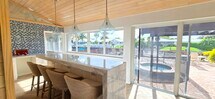 Amazing water views! No fixed bridges! Bring the boat! Beautiful intracoastal home, pool, jacuzzi & dock! Great location close to restaurants, shops & beach! Gorgeous beamed cathedral ceilings, spacious & open floorplan. Remodeled kitchen, granite counters, island, eat in area, stainless appliances, Subzero refrigerator & Thermador double oven. Built in pantry cabinets for ample storage. Butler kitchen & versatile office. Brick fireplace living room, formal dining & buffet area. Family room w long waterfall counter bar. All overlooking the pool & intracoastal! Master bedroom offers walk in closet plus sunroom w closet & water views. Master bath walkin shower & spa tub. IMPACT windows & auto roll down screens. Exceptional waterfront outdoor living space, pool, jacuzzi, extended deck & dock