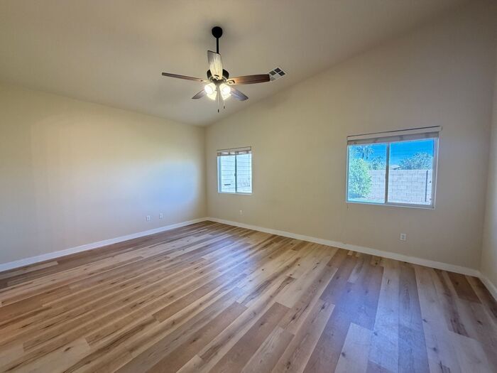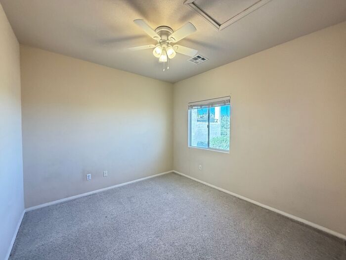 Advertised rent includes sewer, refuse, association dues, and RBP*. Upgraded two-story home in a gated community with park and mountain background views. The open-concept layout features high ceilings and a spacious kitchen open to the living room with quartz countertops, breakfast bar, breakfast nook, and double ovens—ideal for everyday living and entertaining. Primary suite is conveniently located downstairs and includes a large walk-in closet, soaking tub, enlarged walk-in shower, and dual sinks. Upstairs offers secondary bedrooms and a loft that can be used for an office, hobbies, or additional living space. Ceiling fans throughout help moderate temperature. Washer and dryer located downstairs in laundry room. Relax and play in the backyard featuring a covered patio, artificial turf, and desert landscaping for easy care. Conveniently located near the freeway and close to Cliff Shadows Desert Park, Trigono Hills Park, and Lone Mountain Park with trails, play areas, and splash pad. Other features include solar screens, freshly cleaned air ducts, and a new water heater. *All residents are enrolled in the Resident Benefits Package (RBP) for $39.95/month which includes liability insurance, credit building to help boost the resident’s credit score with timely rent payments, HVAC air filter delivery, move-in concierge service making utility connection and home service setup a breeze during your move-in, our resident rewards program, and much more! No smoking No pets Contact us to schedule a showing.