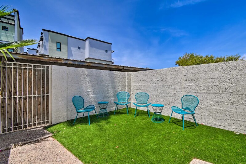 Property Id: 1144095 This 2 bed 1.5 bath townhome is located just a few blocks from Old Town Scottsdale. The newly remodeled and decorated townhome provides a fully equipped kitchen, a backyard with AstroTurf and lounge furniture, and access to a community pool. It comes with a covered parking space in the rear of the building just outside the back gate. It is available furnished or unfurnished depending on the lease length.