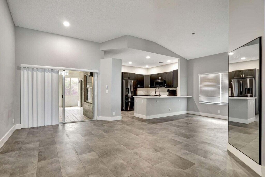 This updated home is ready and waiting for you! Newer flooring, kitchen, bathrooms and impact windows. One story home with 3 bedrooms, 2 large bathrooms and enclosed, air-conditioned patio that extends your living space, plus 2-car garage. PET FRIENDLY - up to 2 pets, no weight limit with $250 refundable pet deposit. Lawn care and garbage service included in rent. Tenant pays electric, water and internet/cable. Community is gated and has a pool for resident use. Available 12/20/25, dependent upon HOA approval of tenant application, which can take up to 30 days. HOA application fee is $150 per adult or married couple. Schedule your showing today!