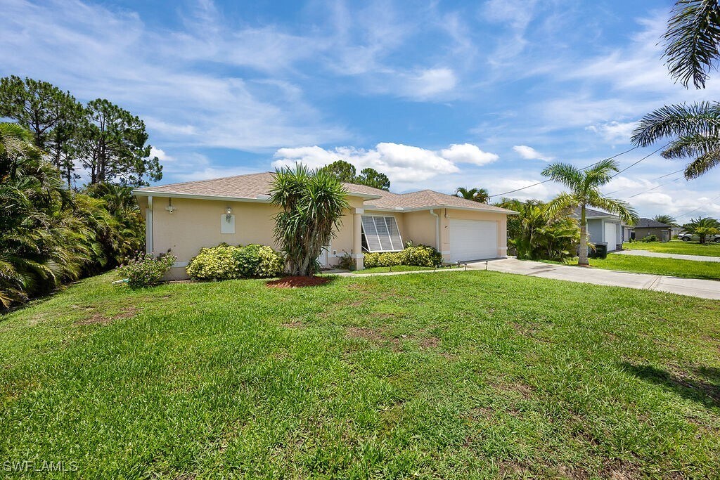 Annual Rental. 3 Bedroom Home in NE Cape Coral Welcome to this beautifully updated 3-bedroom,2-bathroom single-family home in a quiet Cape Coral neighborhood. Offering over 1,200 sq. ft. of living space,this residence blends modern upgrades with a comfortable layout perfect for everyday living. Inside,you’ll find brand new luxury vinyl flooring throughout,fresh paint,and stylishly updated bathrooms. The kitchen is equipped with all-new stainless steel appliances (2024),a reverse osmosis system,and plenty of cabinet space. A split-bedroom floor plan ensures privacy,while the spacious primary suite features dual sinks and a walk-in closet. Step outside to a large screened-in lanai and enjoy the private backyard with lush landscaping,fruit trees,and Areca palms along the perimeter. A two-car garage,smart thermostat,storm protection,security cameras,and a new roof (2023) add peace of mind. Conveniently located near schools,shopping,and dining,this home offers the perfect combination of comfort and convenience.