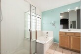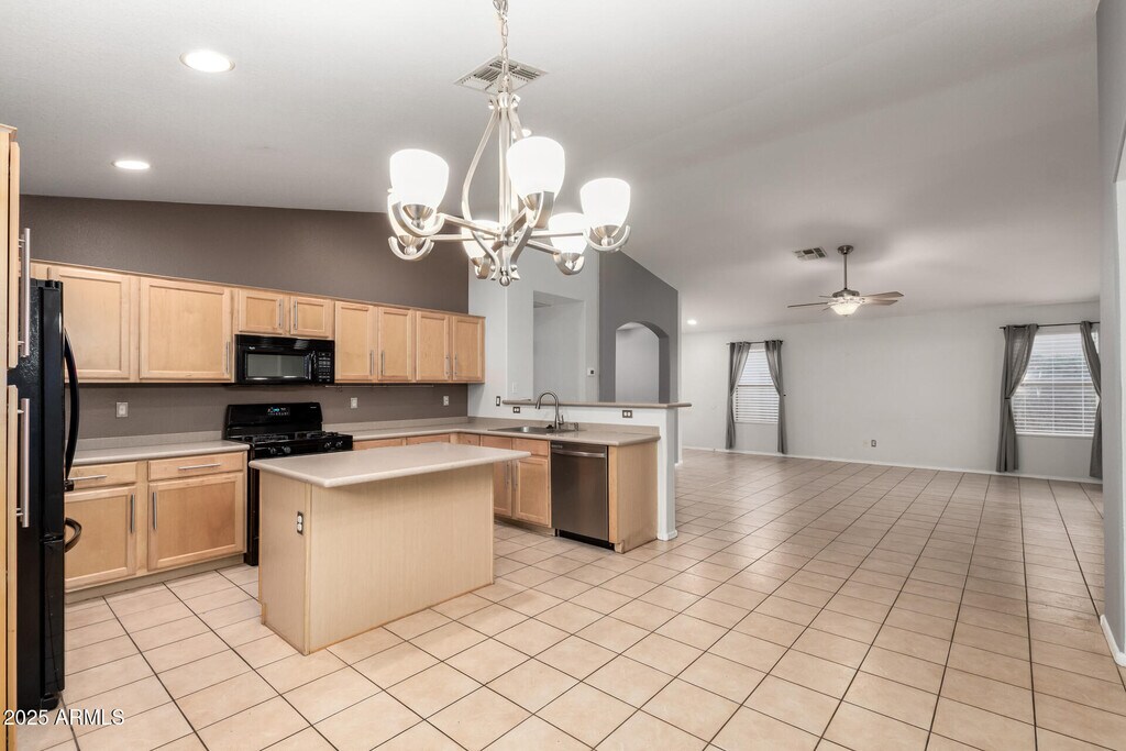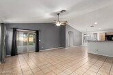 This well-designed split floorplan offers 3 bedrooms plus a den off the great room. The home features ceramic tile throughout the great room,kitchen,dining area,hallways,bathrooms,and laundry room. The kitchen includes Corian countertops,maple cabinets,and upgraded black appliances,including a built-in microwave and gas stove. The master suite offers a garden tub with glass block accents and a raised vanity. Complete window coverings are included throughout the home.