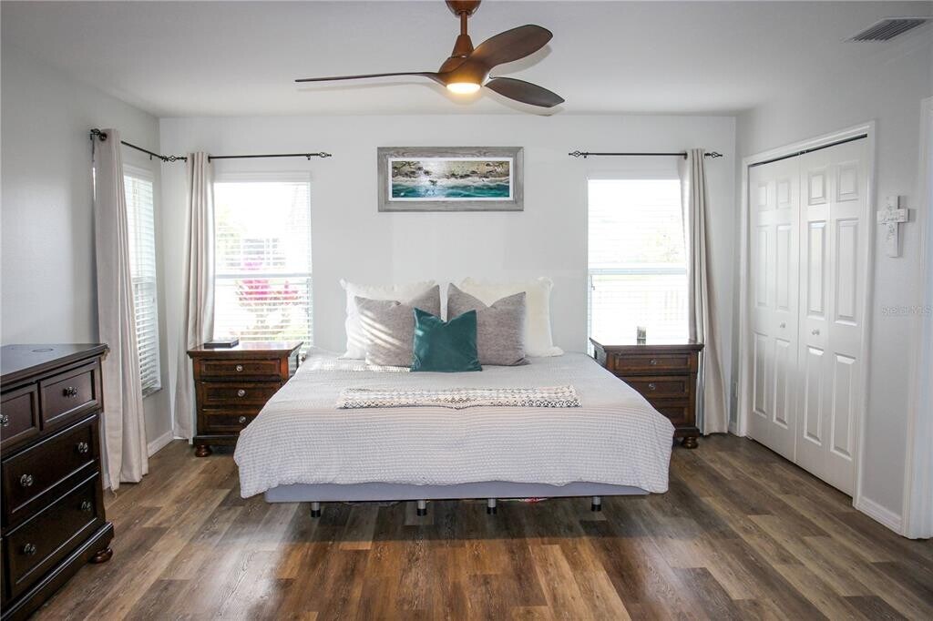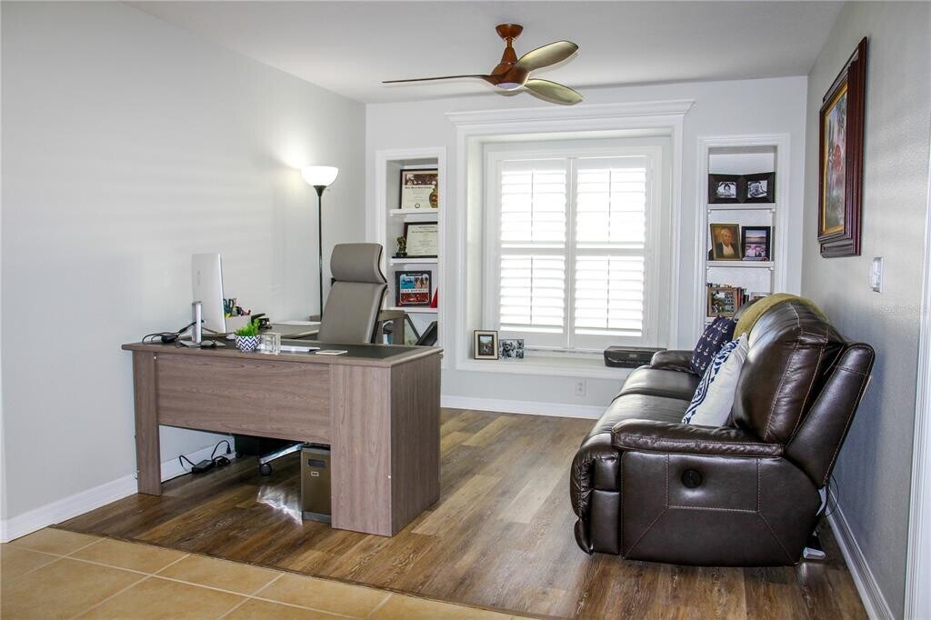 Now available in the highly desirable Kingsfield community,this spacious and beautifully updated three bedroom,two bathroom single family home with a three car garage offers comfort,privacy,and modern upgrades in the heart of Parrish. As you step inside,you are welcomed by soaring vaulted ceilings and an open living and dining area that feels bright and inviting,making it ideal for both everyday living and entertaining. The kitchen is thoughtfully designed with a gas range,a breakfast nook,and an open flow into a second family room that features a built in entertainment center,creating the perfect space for relaxing or hosting guests. The split bedroom floor plan provides excellent privacy,with the owner’s suite set apart as a true retreat. This spacious suite includes dual custom walk in closets with built ins,drawers,and shoe storage,along with a beautifully remodeled en suite bathroom featuring a stunning walk in shower. Two additional bedrooms are conveniently located near a full guest bathroom and are complemented by a versatile den area that works perfectly as a home office,playroom,or flex space. Additional interior features include an indoor laundry room with washer and dryer included,a utility sink,an additional refrigerator,a whole house water filtration system,new vinyl flooring in all bedrooms and the den,updated fans and light fixtures,and fresh interior and exterior paint. Step outside to enjoy the expanded screened in lanai,which features elegant tile flooring and a tongue and groove ceiling while overlooking lush Florida landscaping and peaceful lake views. The large backyard is fully fenced with new vinyl fencing and includes gates on both sides of the home,offering both privacy and functionality. Residents of the Kingsfield community enjoy access to a clubhouse,swimming pool,basketball court,two playgrounds,and dog parks. The home is conveniently located just one mile from Publix,three miles from the new Lowe’s plaza,and five miles from Ellenton Premium Outlets,providing easy access to shopping,dining,and daily essentials. This home is move in ready and truly has it all. Schedule your showing today as this rental will not last. MLS# A4681063