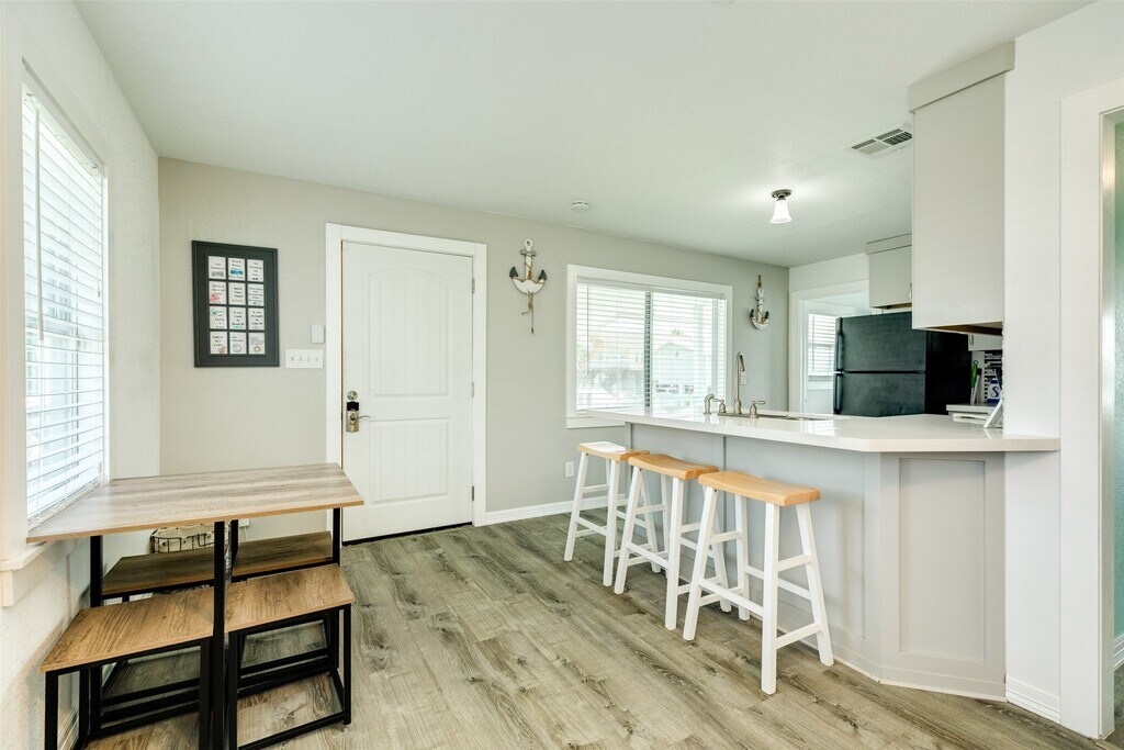 This is a must-see renovated beachside charming coastal gem. This 2 bedroom 2 bath has an expansive wrap-around porch to enjoy the views and coastal breeze! Features include an open kitchen,breakfast bar,and new furnishings. Downstairs has a covered patio/carport that allows for an additional entertainment area and parking. Enjoy the short walk or golf cart ride to the beach. Can come fully furnished with coastal decor if you like,otherwise we will remove the furniture. MLS# 10123178