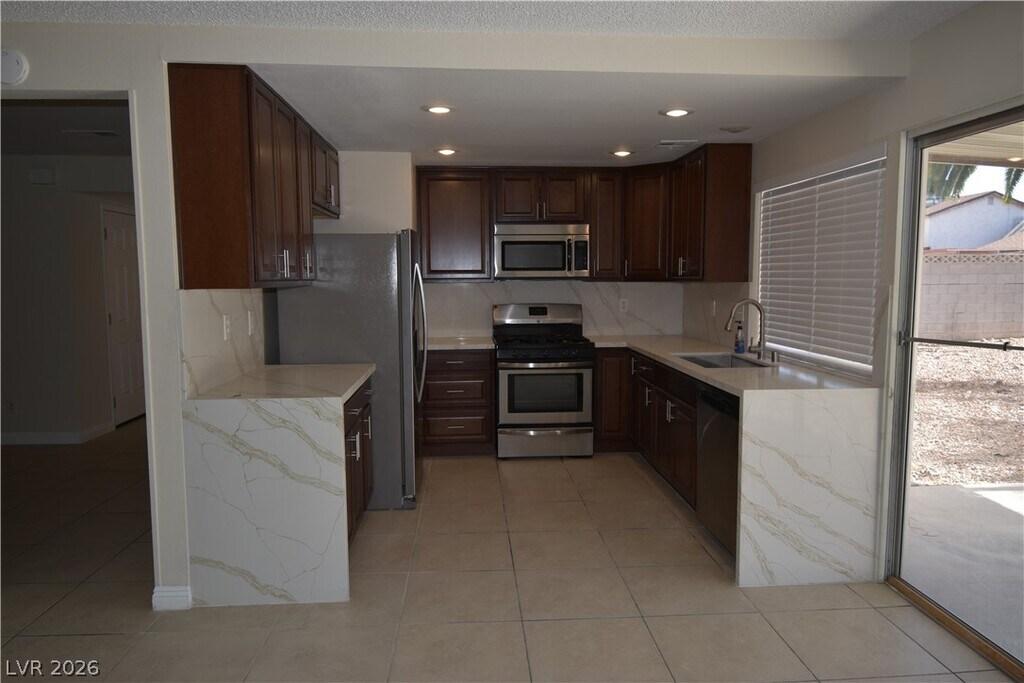This spacious 2200 sq. ft. 4 bedroom 2.5 bath house was completely painted and remodeled recently. The remodeling included installation custom kitchen cabinets, quartz countertops and backsplash, includes stainless steel appliances, bathrooms vanities, faucets, medicine cabinets, toilets, 2 faux wood window blinds throughout and so much more. You will love the large primary bedroom with retreat and fireplace and spacious closets; large, open and airy living room with floor to ceiling windows flanking either side of the fireplace; separate dining room; large family room, 2 car garage, large backyard with covered patio. Washer and dryer included. Close to shopping, dining and freeway. The monthly rent of $2,250 includes sewer and trash. This house is a must see and ready for immediate move-in!!!"