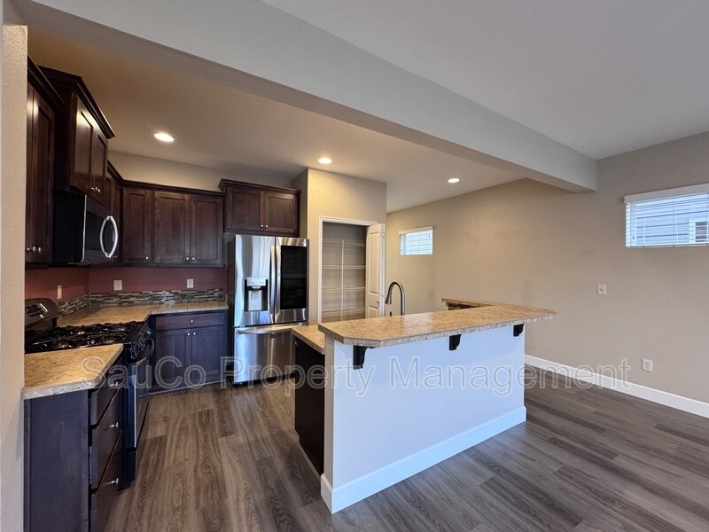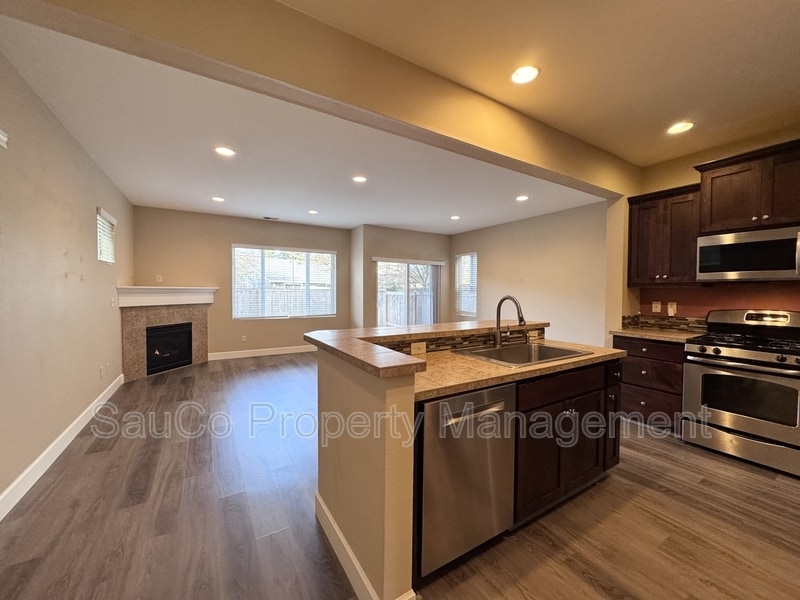 Enjoy energy-efficient, smart living with solar panels, a Ring smart security system, and central A/C and heating with a smart temperature control system in this beautiful 4-bedroom home in Parkside Estates, now coming available for rent. This well-designed two-story home features hardwood floors throughout the main level, a cozy gas fireplace, and a sliding glass door that opens to the patio and fully fenced backyard, ideal for relaxing or entertaining. The open kitchen offers a center island, stainless steel appliances, and a pantry, while upstairs includes four spacious bedrooms, a versatile loft nook perfect for a home office, and a primary suite featuring an en-suite bathroom with double sinks and a thoughtfully modified shower for enhanced comfort and functionality. Additional highlights include a brand-new washer (washer and dryer included) and contemporary finishes throughout. Pets are welcome (limit 2; breed restrictions apply; additional deposit and pet rent required). No smoking or vaping permitted. HOA rules apply. 12-month lease required; residents are responsible for utilities, yard maintenance, and renter's insurance. All information is deemed reliable but not guaranteed and subject to change; rental criteria and applications are available on our website.