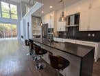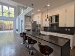 Gated Neighborhood! Modern luxury townhouse-style condo in the heart of Southwest Durham. Abundant natural light with soaring ceilings and windows floor to ceiling. Chef's kitchen with Miele stainless steel appliances, gas cooktop, waterfall quartz on the oversized kitchen island bar, custom cabinets boxed to the ceiling, large walk-in pantry. Open floorplan with combined dining/living area including gas fireplace and sliding patio door that leads to the deck and wooded views. Enclosed 1st floor office/flex room. Second floor boasts a luxurious primary suite with a spa like free standing tub, walk-in shower and closet, and private covered balcony. Additional bedroom complete with ensuite bath and private balcony. Large loft space which is perfect for a TV room, hangout, office. Community amenities include a clubhouse for socializing and entertaining with a kitchen, lounge area, and large table for dining or meetings. Two car garage w/storage. Gated Neighborhood! Modern luxury to...