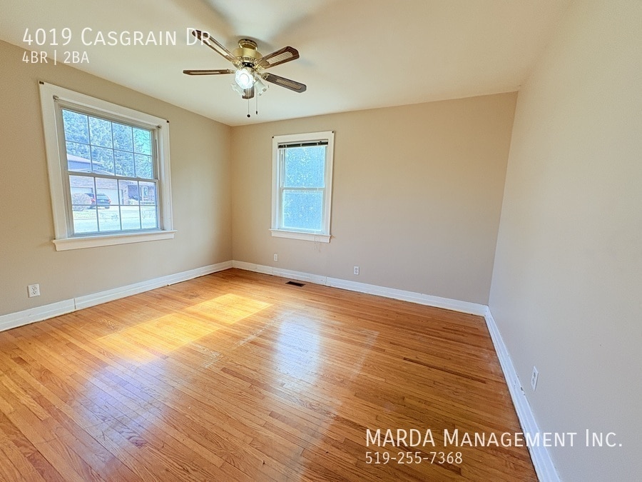 Welcome to 4019 Casgrain Ave! This charming 1.5-story, 4-bedroom, 2-bathroom house in South Windsor offers comfort, style, and convenience in an unbeatable location. Enjoy the luxury of a 1.5-car garage and a beautifully crafted built-in entertainment unit complemented by pristine hardwood floors. The wonderfully large backyard and green space are perfect for outdoor activities, and you're just steps from the Roseland Golf Course. Located in one of Windsor's most desirable neighbourhoods, you'll have top-rated schools nearby, including Southwood, Our Lady of Mount Carmel, Bellewood, Massey, Holy Names High School, and St. Clair College. Tenant responsible for hydro, water, gas, lawn care and snow removal. First and last month's rent, a credit check, and a one-year lease are required. Professionally managed by MARDA Management, offering 24/7 maintenance support with a live agent and easy, convenient rent payment options. Call MARDA MANAGEMENT today at 519-255-RENT or email to schedule your viewing. Watch a video tour: Fenced Back Yard No Smoking Allowed Pet Friendly Pet Friendly Building
