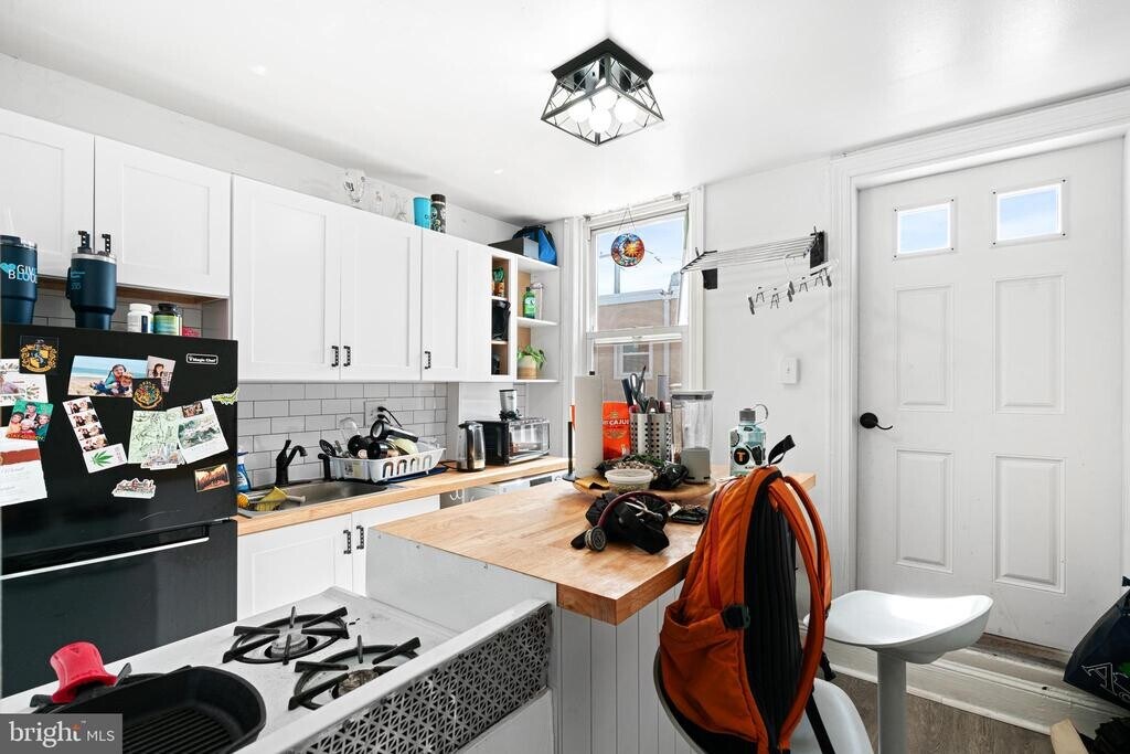 Available now in South Philadelphia’s Whitman neighborhood! Bright and updated 1 bed, 1 bath second-floor apartment featuring hardwood floors, modern lighting, and in-unit laundry. Kitchen offers white shaker cabinets, butcher-block counters, subway tile backsplash, gas range, refrigerator, and microwave. Private deck which is great for morning reading and coffee! Tenant pays all utilities plus $25/mo water fee. Cats permitted with $300 one-time deposit per month. Convenient to shopping, restaurants, public transit, and major highways.