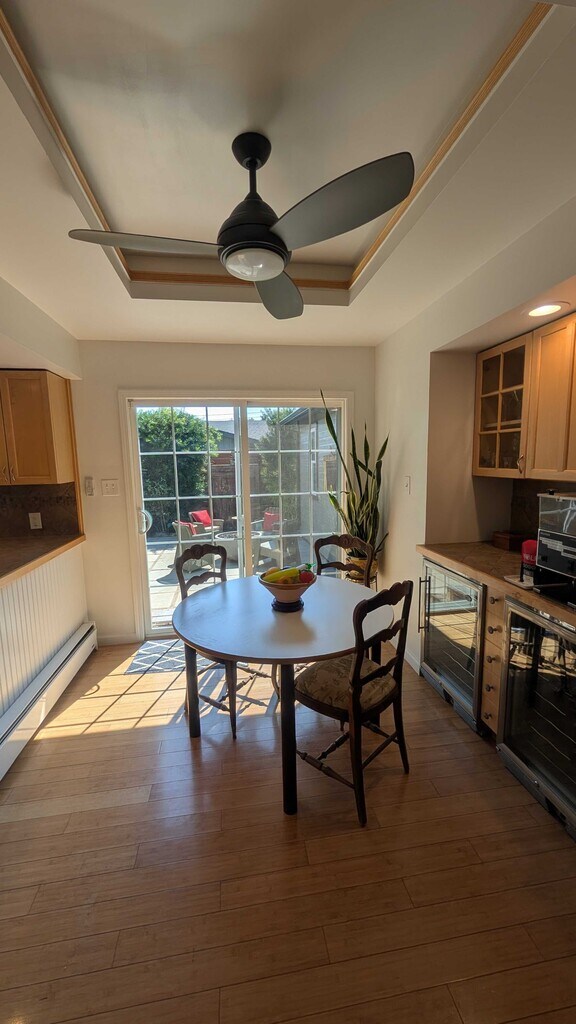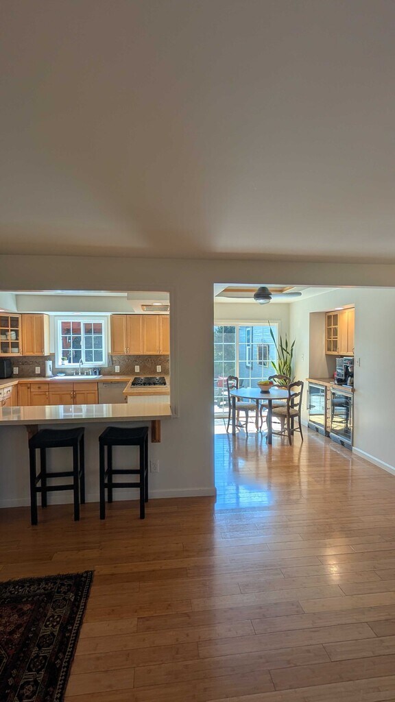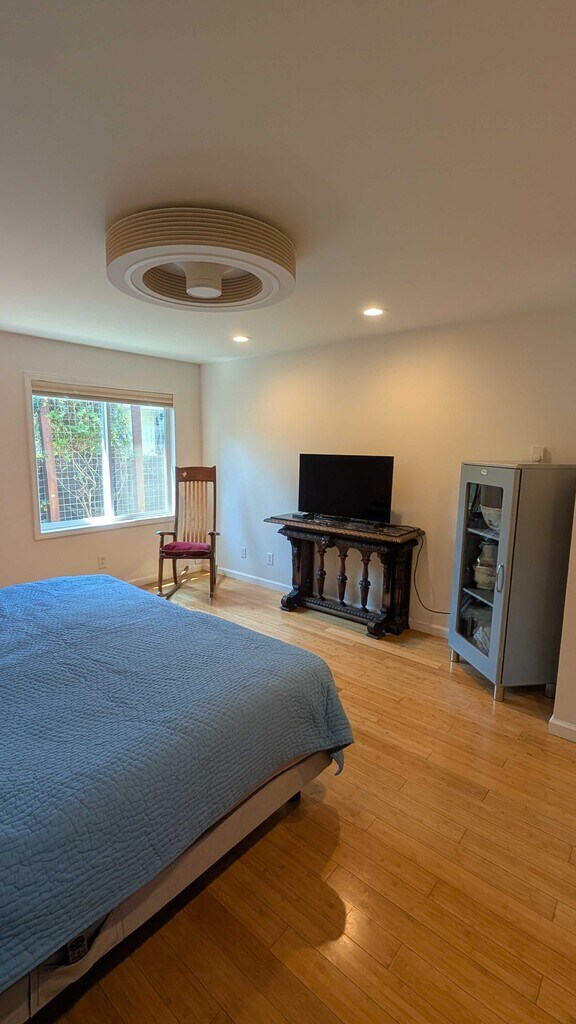 Hot tub, fire pit, and pergola with large outdoor dining table are just a few of the amenities of this property! This beautifully landscaped property has a private yard, open kitchen and living space, AC, and bonus third room! Upon entering the home you are greeted with the living room that flows perfectly into the kitchen and dining space and right into the back yard for ultimate indoor outdoor living. Down the hallway are the primary en suite bedroom that has a beautiful shower and walk in closet, plus a spacious guest bedroom and second full bathroom. Off of the living room lives the bonus third room.This private yard has a built in fire pit, large dining table that lives under a newly refinished pergola, and a spacious hot tub to enjoy!A great opportunity to live on one of Healdsburg's most sought after streets, just blocks to the Plaza! One car garage and driveway parking available. Washer and dryer included. Offered Unfurnished- furniture in photos not included.Please note the owners live in an ADU on the property.Inquire about well behaved pets!