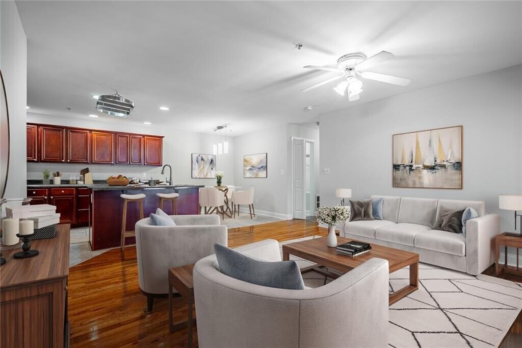 Available immediately. Welcome home to this bright and inviting 2-bedroom,2-bathroom condo perfectly situated in a peaceful,well-maintained community tucked away in a quiet part of Smyrna. Within walking distance to Smyrna Market Village,this spacious unit features beautiful hardwood floors and a comfortable open-concept living area and private balcony. The primary bedroom includes an en suite bath with tiled shower,walk in closet,while the second bedroom makes an ideal guest room or home office. In-unit laundry room,ample closet space and pantry. Privately owned and managed,few miles to the Battery and Braves Stadium. Community amenities include pool,dog park,clubhouse,and fitness center. Water Sewer and Trash are included in the rent. MLS ID 7677359