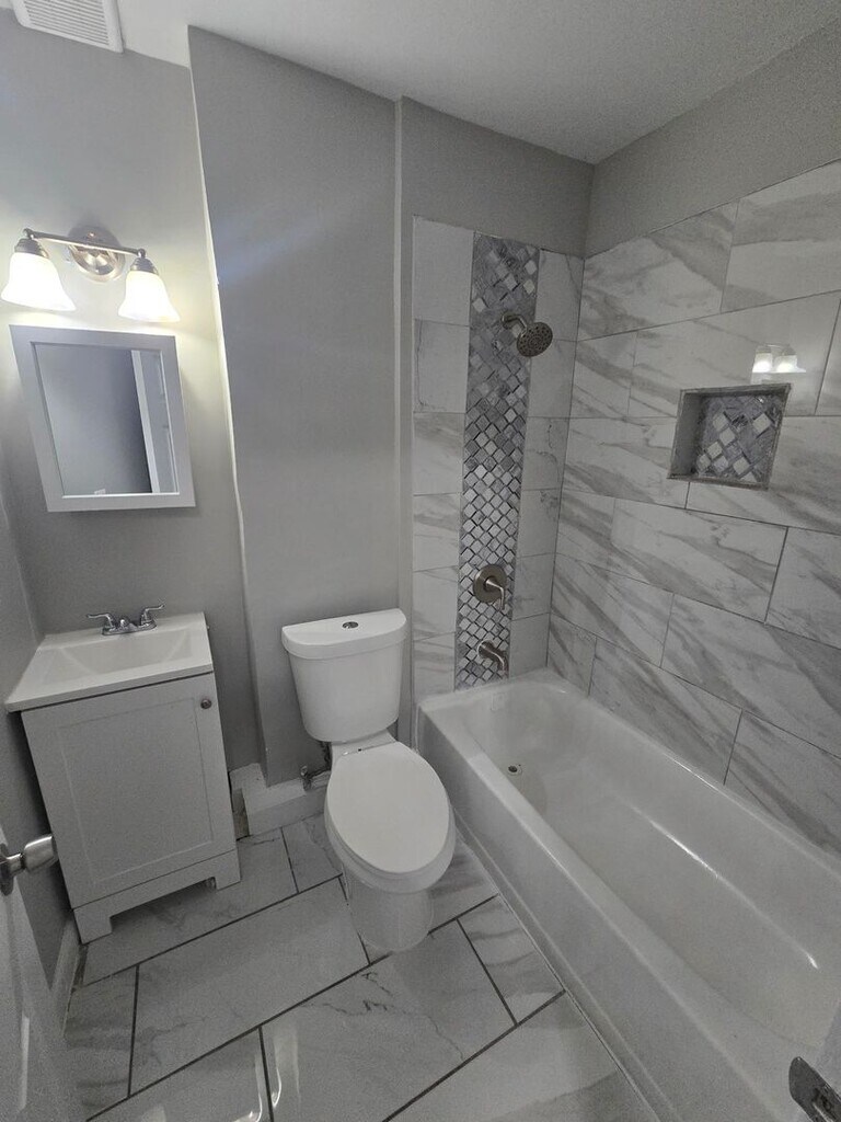 Welcome to this charming 2-bedroom, 2-bathroom home located in the vibrant city of Baltimore, MD. This home boasts a host of modern amenities including a refrigerator, central air, and central heat for your comfort. The kitchen is equipped with a gas stove, stainless steel microwave, and dishwasher, making meal prep a breeze. The home features hardwood floors throughout, adding a touch of elegance and easy maintenance. The partially finished basement offers a versatile space that can be utilized as an additional bedroom or den, according to your needs. The property also includes two updated full bathrooms with ceramic tile for a sleek, contemporary look. The large living room is perfect for entertaining or relaxing after a long day. Step outside to a fenced backyard, providing a secure space for outdoor activities, and a rear porch, ideal for enjoying a morning coffee or evening drink. Recessed lighting throughout the home creates a warm and inviting atmosphere. Experience the perfect blend of comfort and convenience in this Baltimore home.